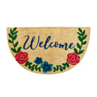 Welcome Flower Garland Non Slip Coir Mat features a curved shape with embroidered style florals and welcome script. Coir cleans shoes and the PVC backing adds grip for busy doorways. View all items in Doormats.