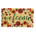 This hand-spun and hand-painted coir doormat features a cheerful "blooming welcome" message. the natural coir fibers effectively trap dirt and debris, keeping your floors clean and welcoming guests with a smile.