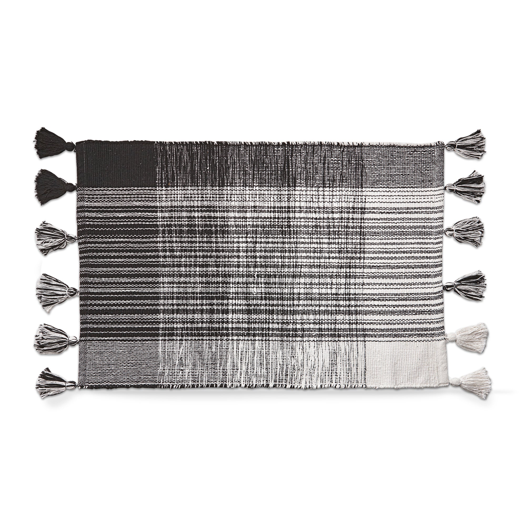 Our tassel plaid rug makes the perfect statement anywhere in your home; try it in the kitchen or layered under a doormat. this rug is artisan-made and hand woven on traditional looms in india. made from a cotton and polyester blend, this rug features handmade tassels on two sides. layer with a range of rugs and doormats available from tag for added depth and dimension.