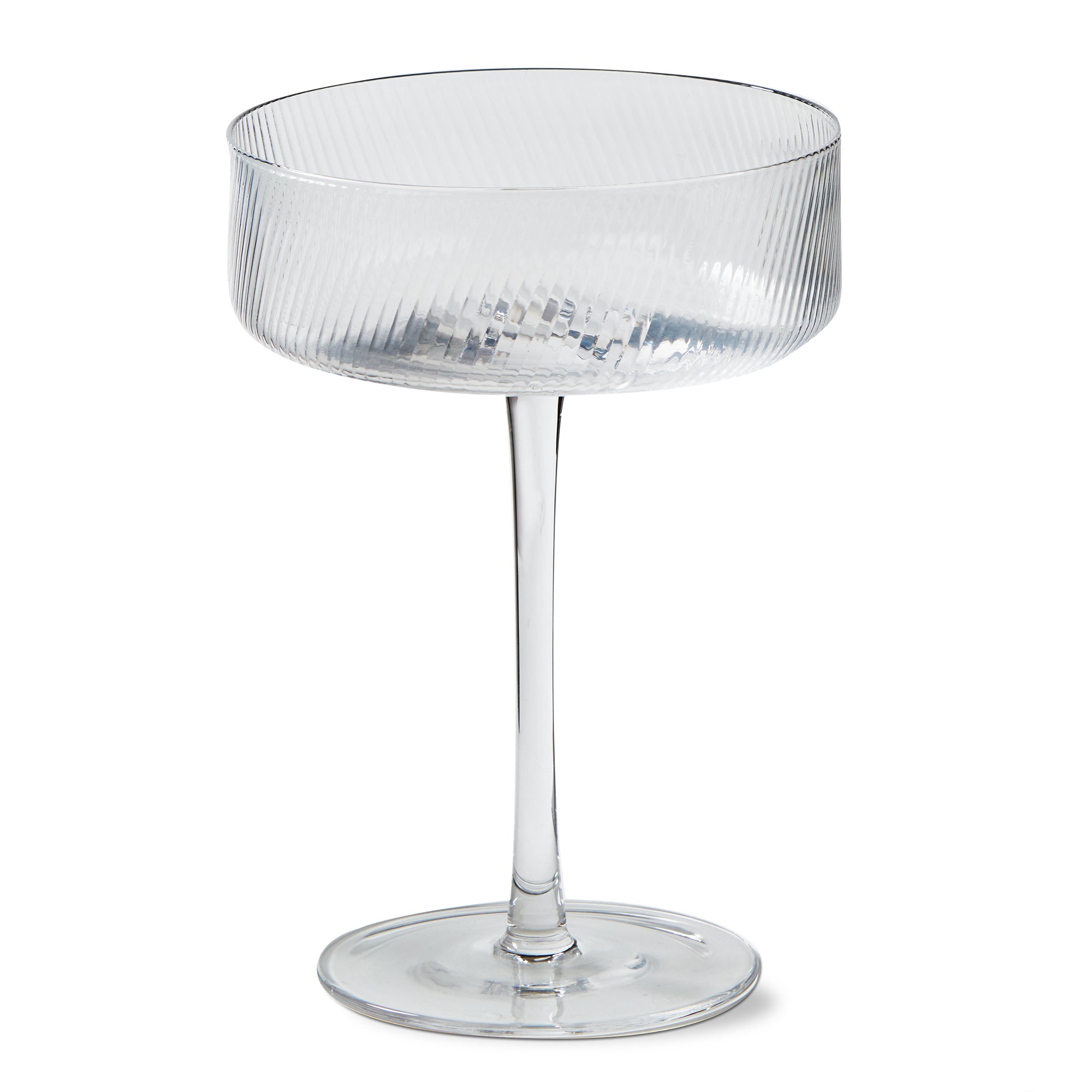 A fresh take on a coupe—this soda-lime glass features a textured body and airy silhouette for cocktails, bubbles, and plated desserts. View all items in Drink.