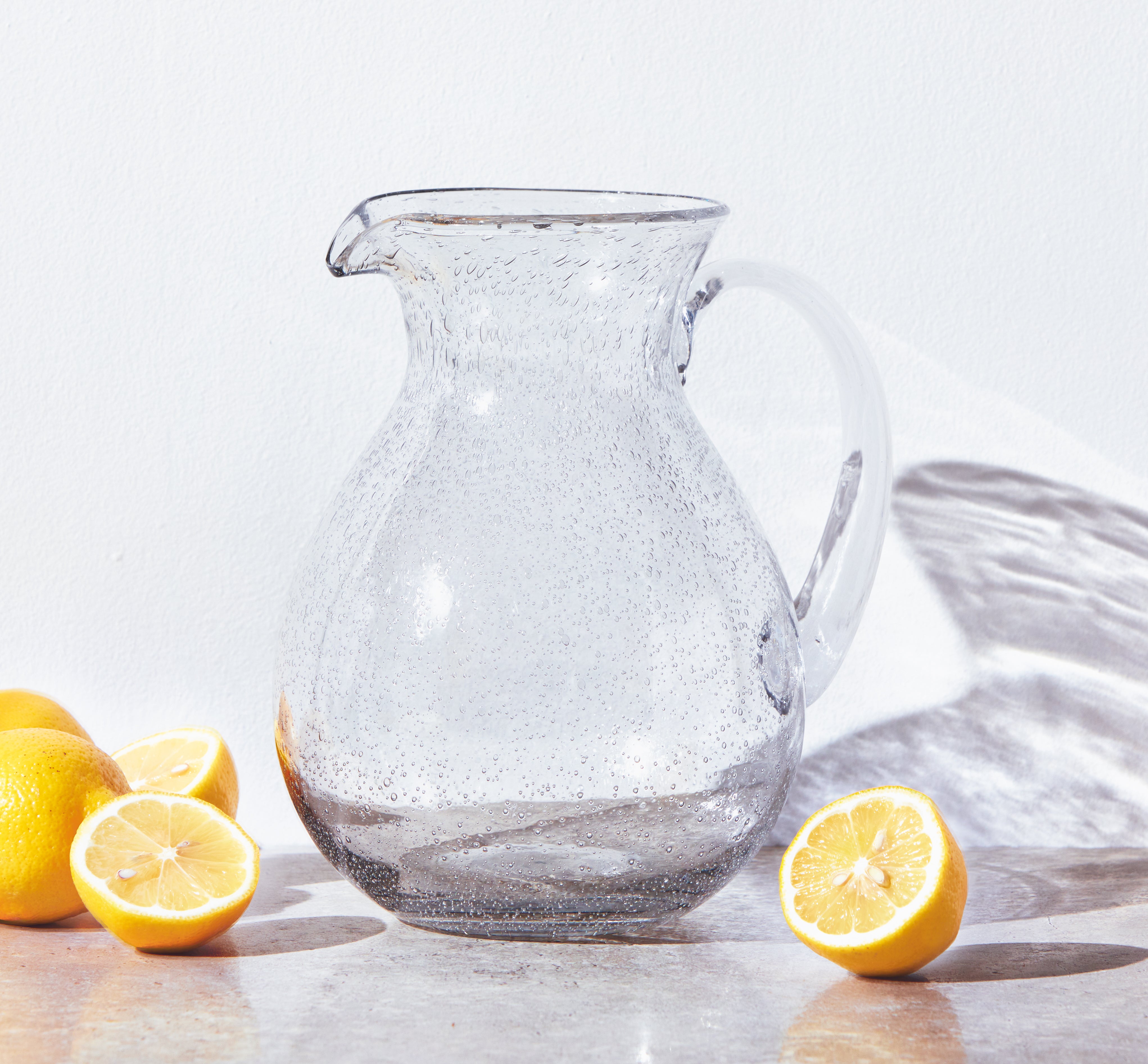 Strikingly beautiful simplicity. the clear bubble glass pitcher has a truly festive charm. each is handcrafted and designed with hundreds of miniature bubbles, forming unique patterns and optical effects. perfect for everyday use or entertaining. artisan-blown. mix and match with more bubble glass choices from the collection.