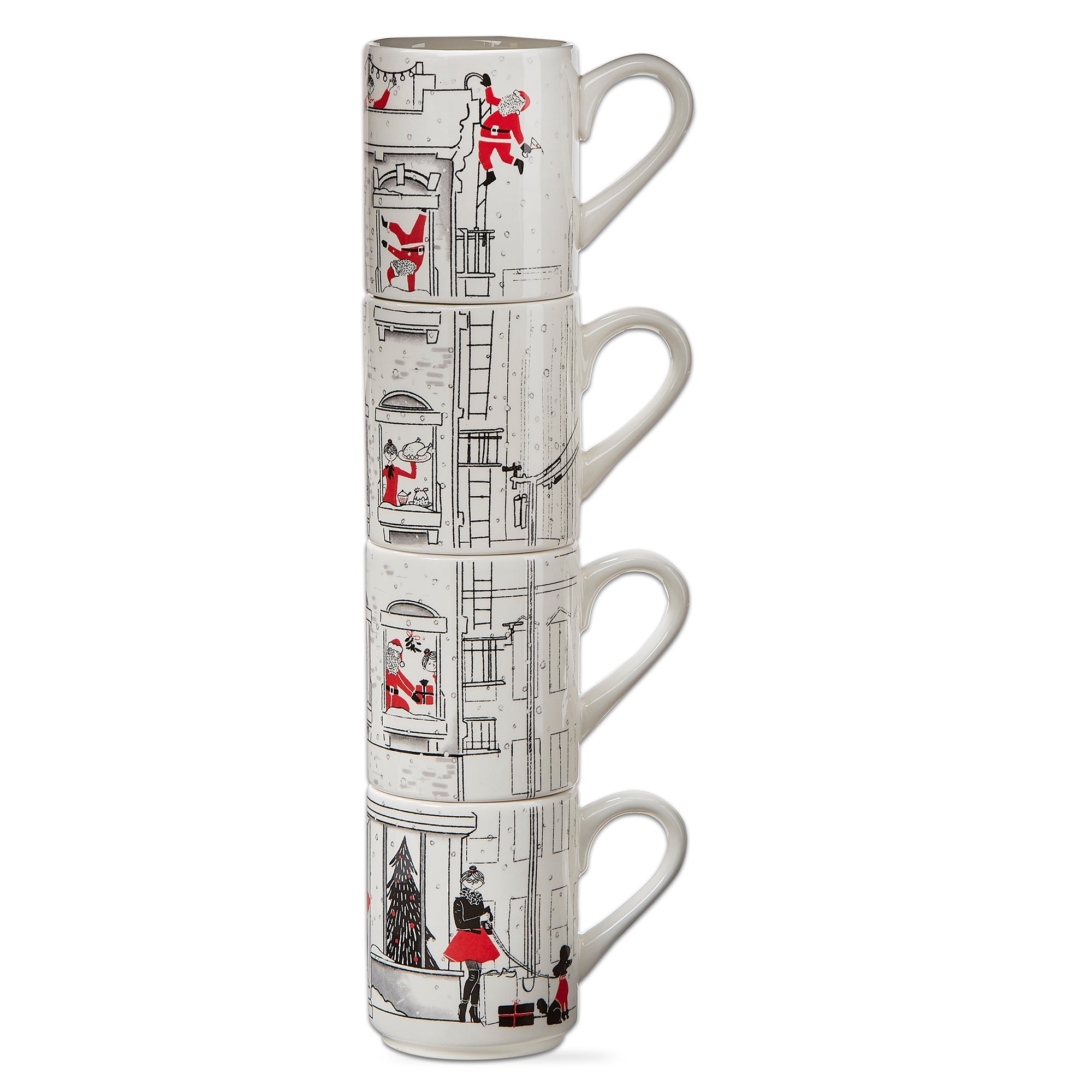 Santa Cityscape Stacking Mug Set Of 4
