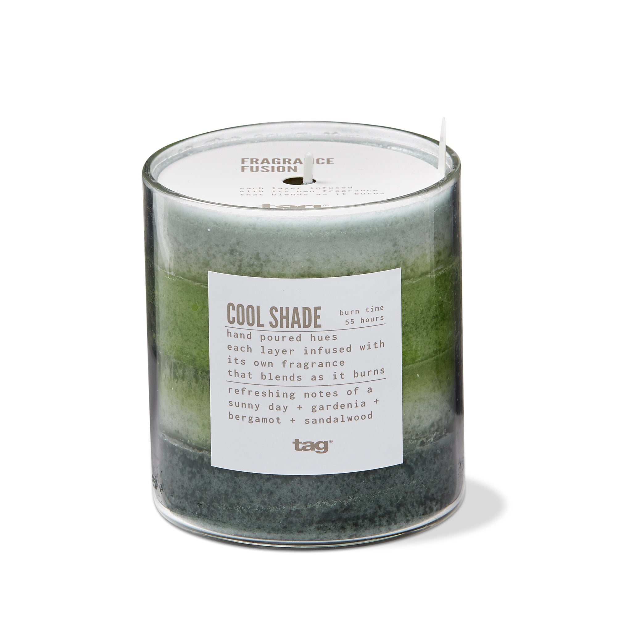 Entertain your senses with our fragrance fusion candles. each layer features a different scent to reinvigorate your senses as the candle burns, yet each blends flawlessly with the scent before it. paraffin wax is hand poured into a glass hurricane and finished with a cotton wick. the layers feature fragrance notes of a sunny day, gardenia, bergamot, and sandalwood that create an ambiance reminiscent of a lazy afternoon spent outdoors.