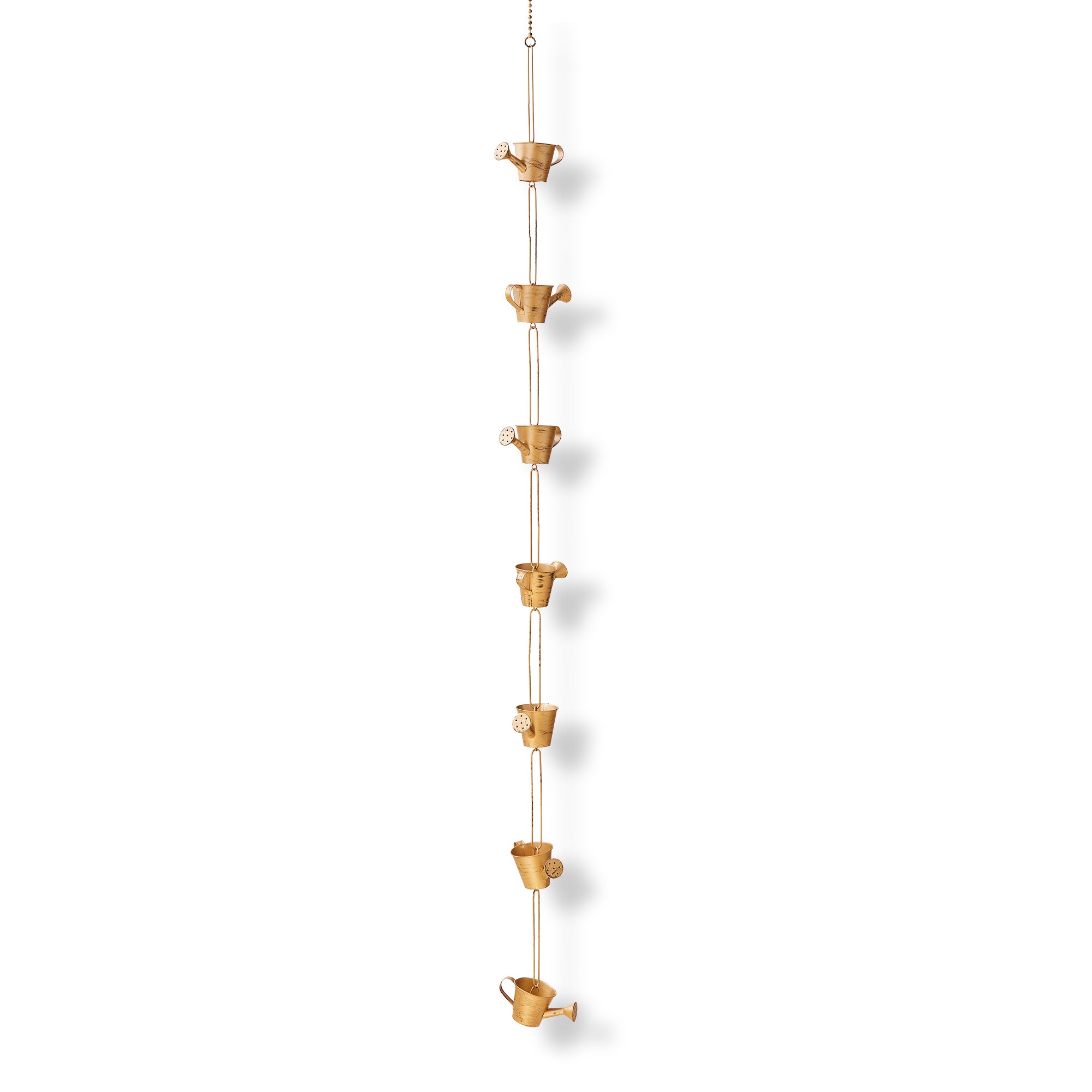 This hand-crafted antique brass iron rain chain features adorable little watering cans and includes jute for hanging. A cute and functional addition to a porch or garden shed!