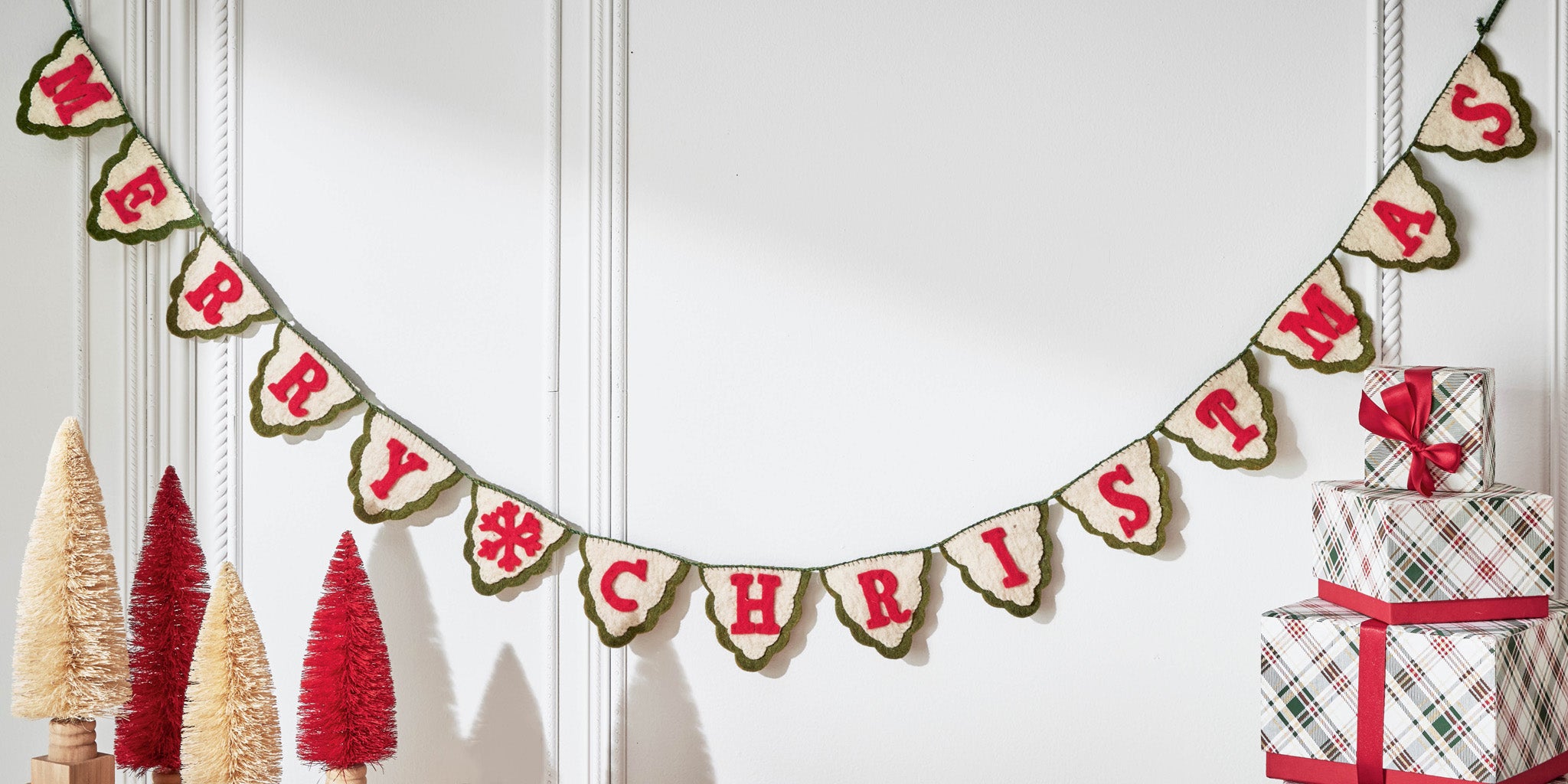 Merry Christmas Wool Applique Felt Banner Garland