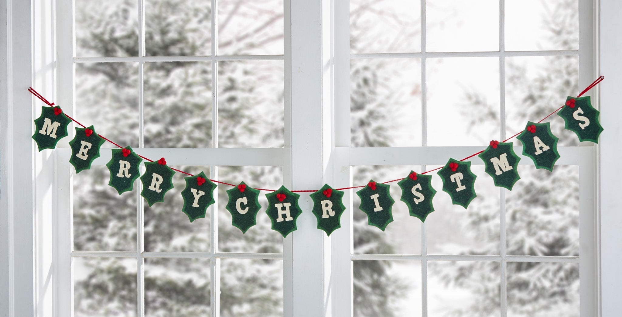 Merry Christmas Holly Felt Garland