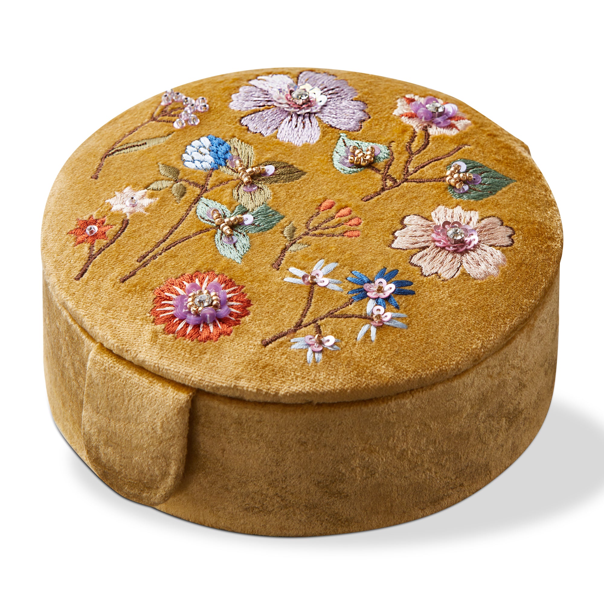 Floral Embroidered Round Box