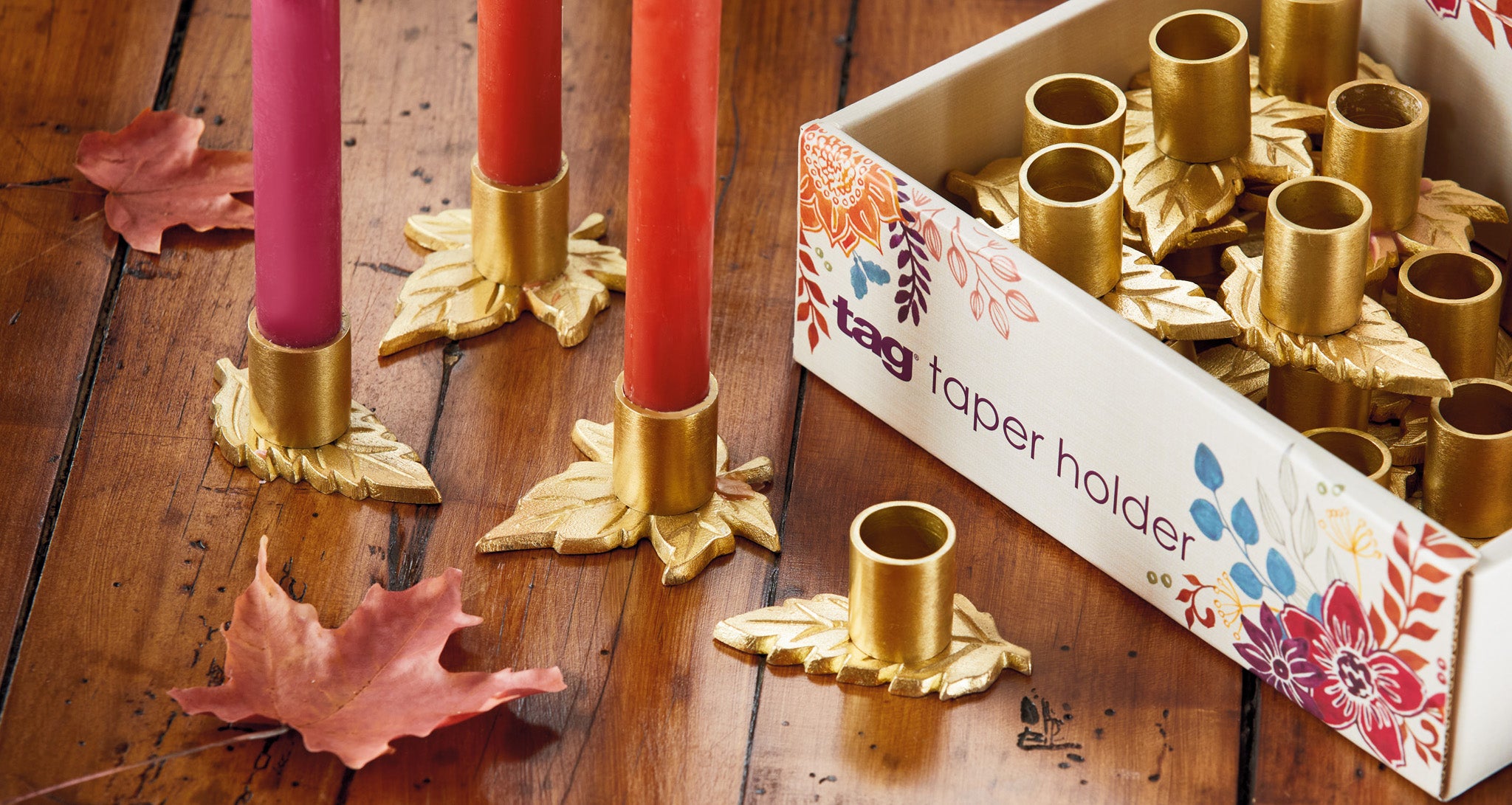 Fall Leaf Taper Holder Assortment Of 20 & Cdu