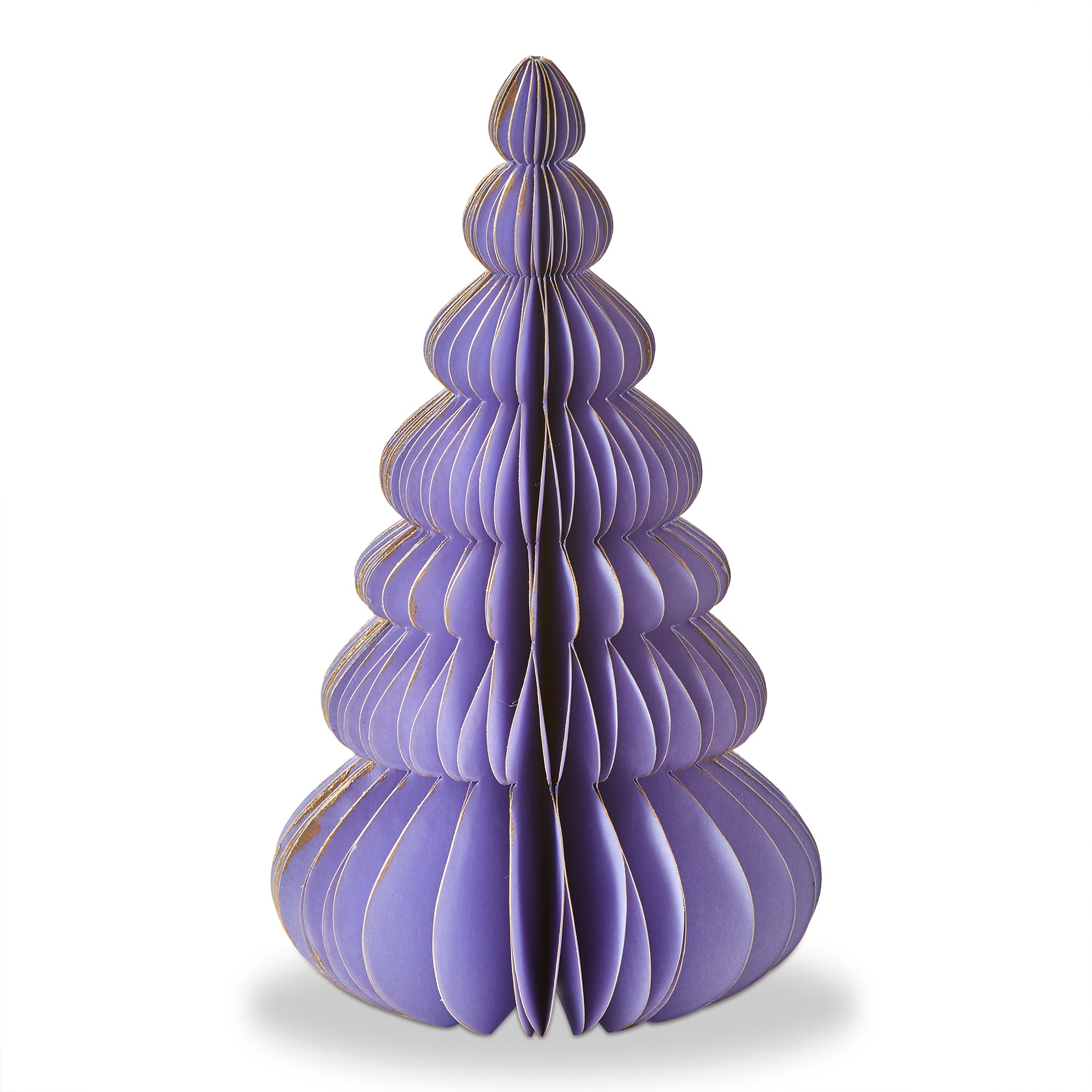 Small groovy paper tree in rich purple that brings jewel tone color to holiday displays. Coordinates beautifully with metallics and brights. Hand painted details add warmth while its versatile design makes styling simple. Sized for layered displays and pairs beautifully with seasonal greenery and décor.