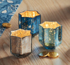 This set of three hanukkah tea light holders is a beautiful and traditional way to celebrate the holiday. the blue glass holders are simple and elegant, and they will make a beautiful addition to your hanukkah decor. View all items in Hanukkah.