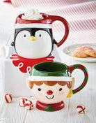 Elf mug with sculpted hand painted details that brings cheerful holiday charm to warm winter drinks. Hand painted details add warmth while its versatile design makes styling simple. Sized for layered displays and pairs beautifully with seasonal greenery and décor. View all items in Holiday Cheer.