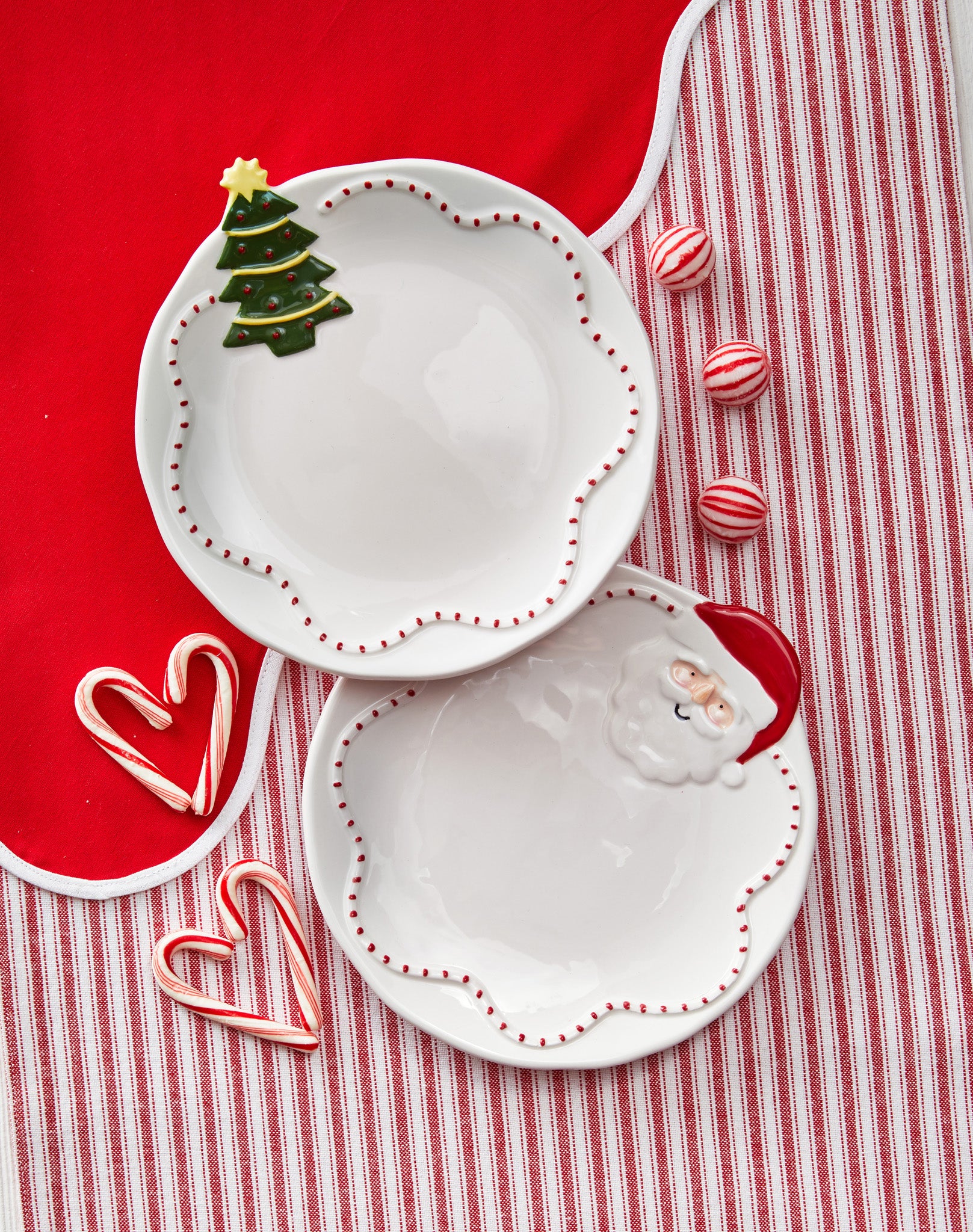 This festive assortment includes two appetizer plates, each featuring a unique design: a Santa Claus and a Christmas tree. Made from durable earthenware, they're perfect for serving appetizers or desserts. View all items in Holiday Cheer.