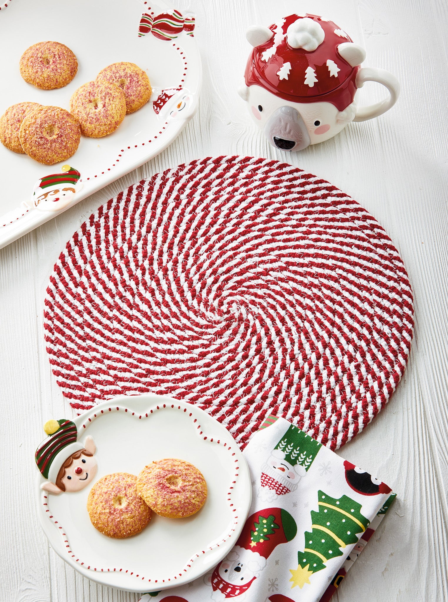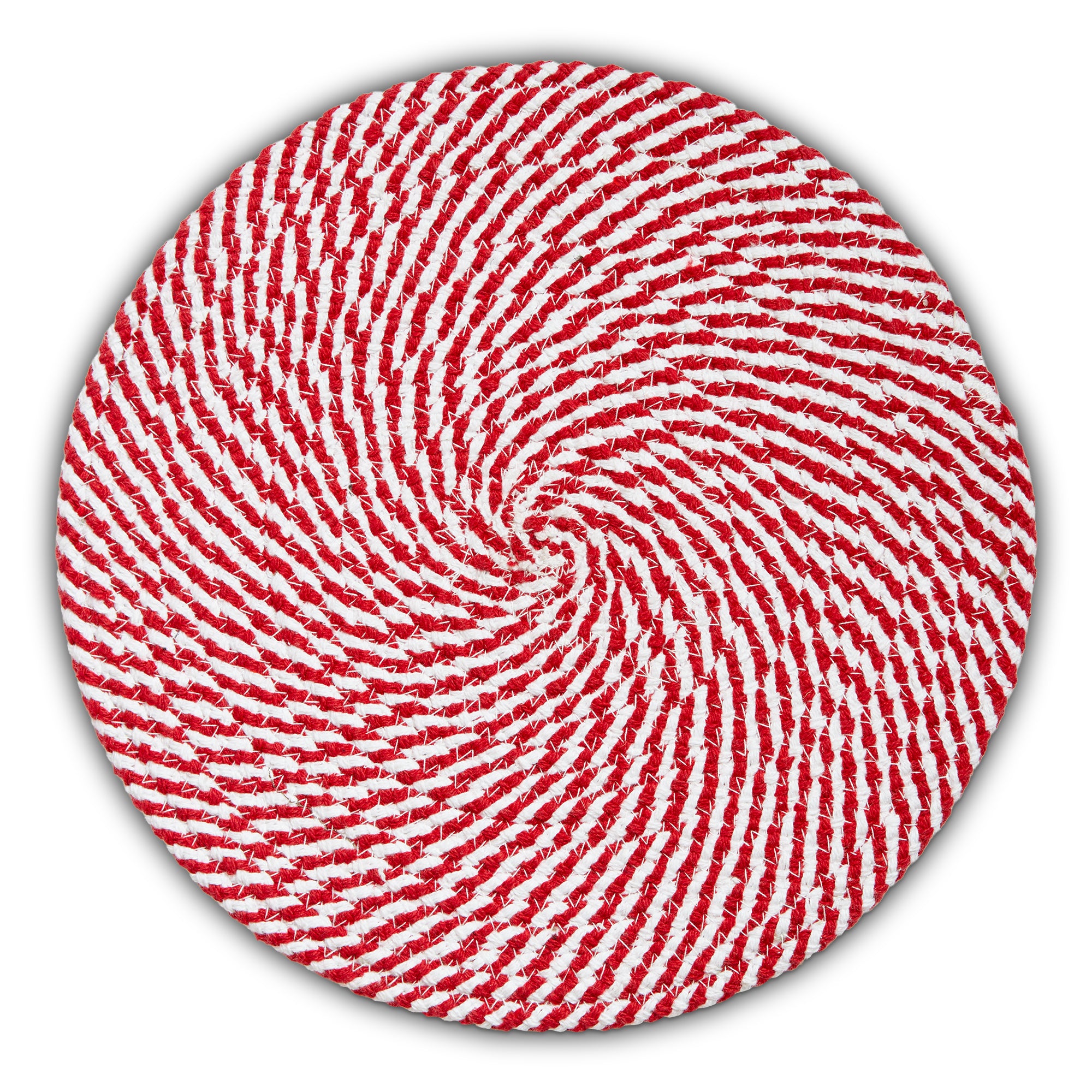 Holiday Cheer round braided placemat that brings warm festive color to tables with a tightly woven cotton design. Hand painted details add warmth while its versatile design makes styling simple. Sized for layered displays and pairs beautifully with seasonal greenery and décor. View all items in Holiday Cheer.