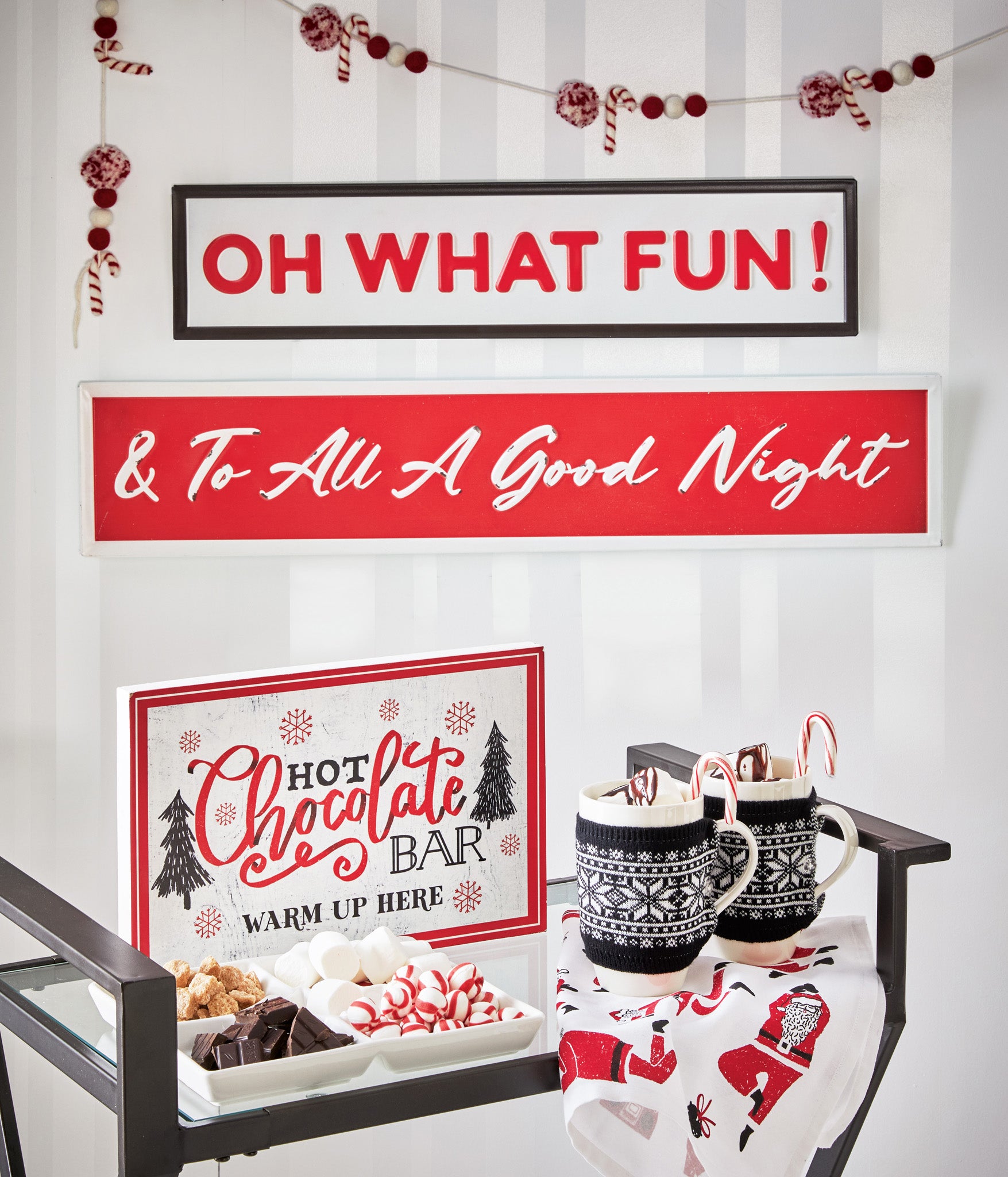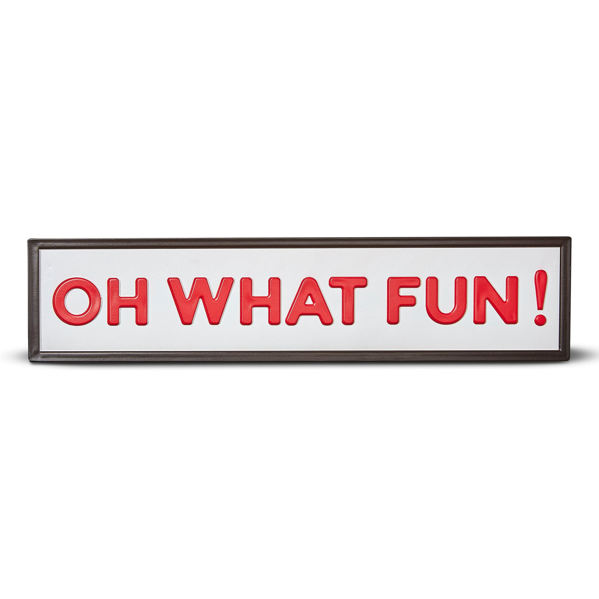 Decorate with fun + festive signs to ring in the holiday season. the perfect fun accent, display in the living room, bedroom, or entryway. tin metal construction, featuring embossed, hand-painted, powder coat, and d-ring hangers along backside to allow for easy hanging.