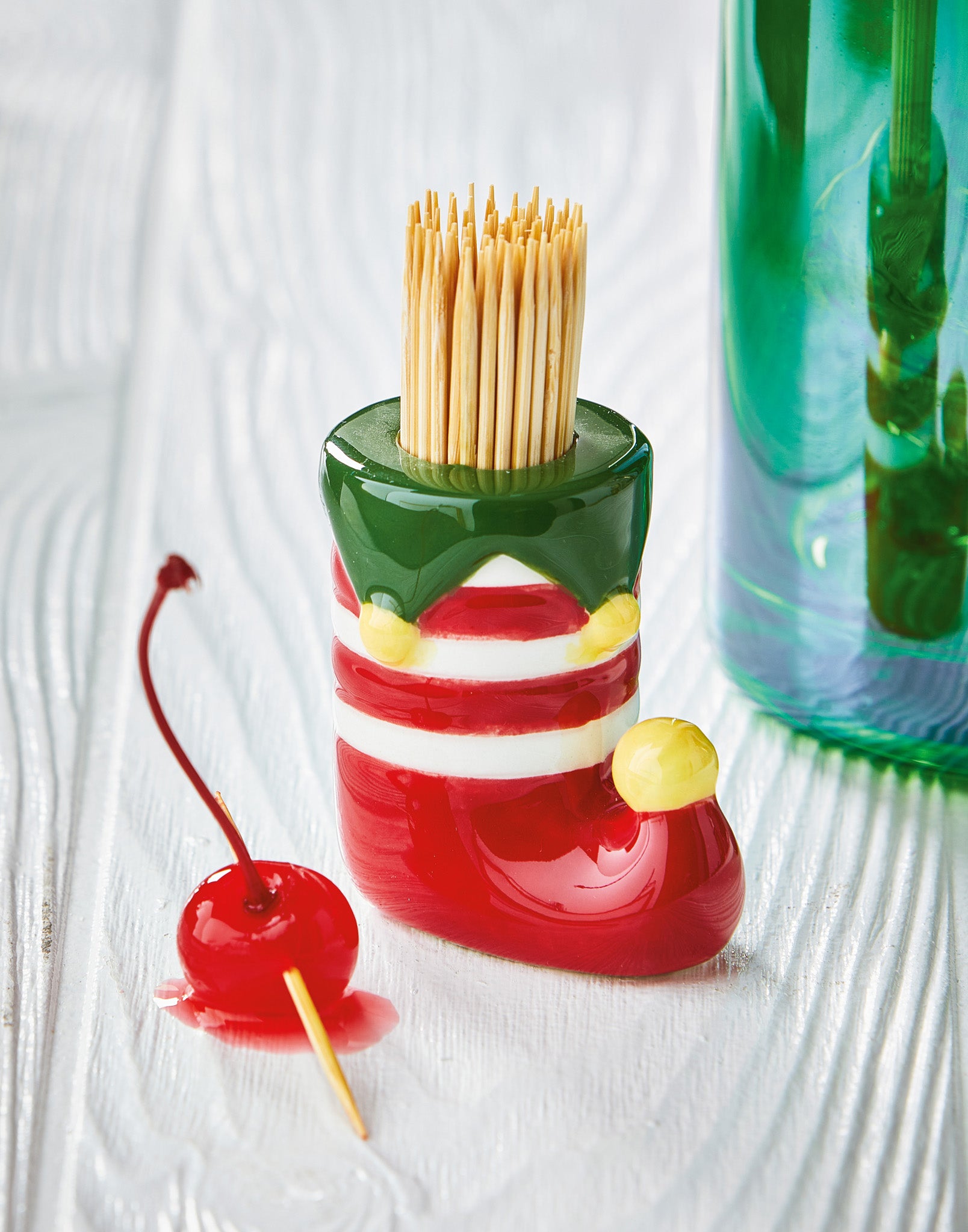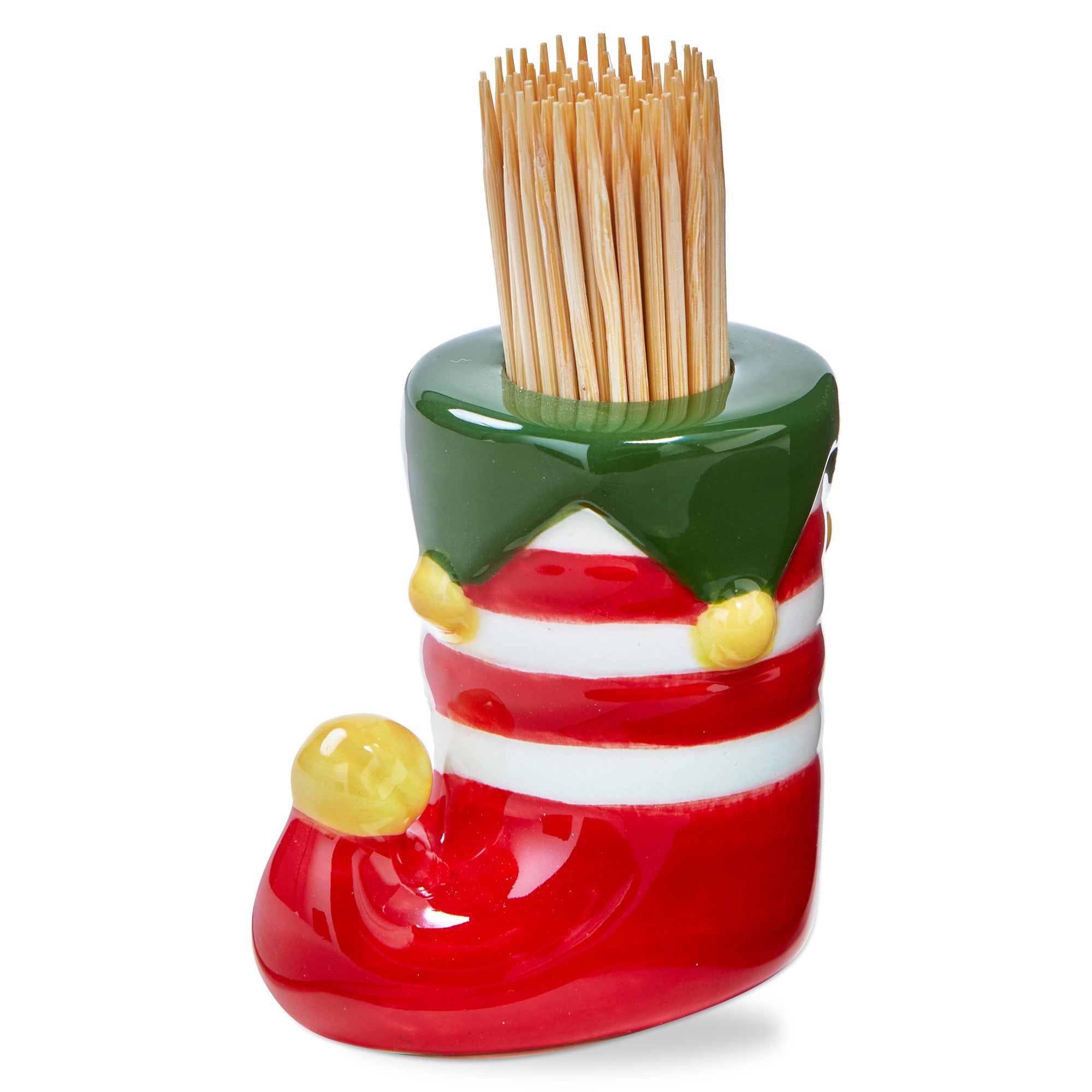 Stocking toothpick holder set that brings whimsical holiday fun to party trays and gatherings. Hand painted details add warmth while its versatile design makes styling simple. Sized for layered displays and pairs beautifully with seasonal greenery and décor. View all items in Holiday Cheer.