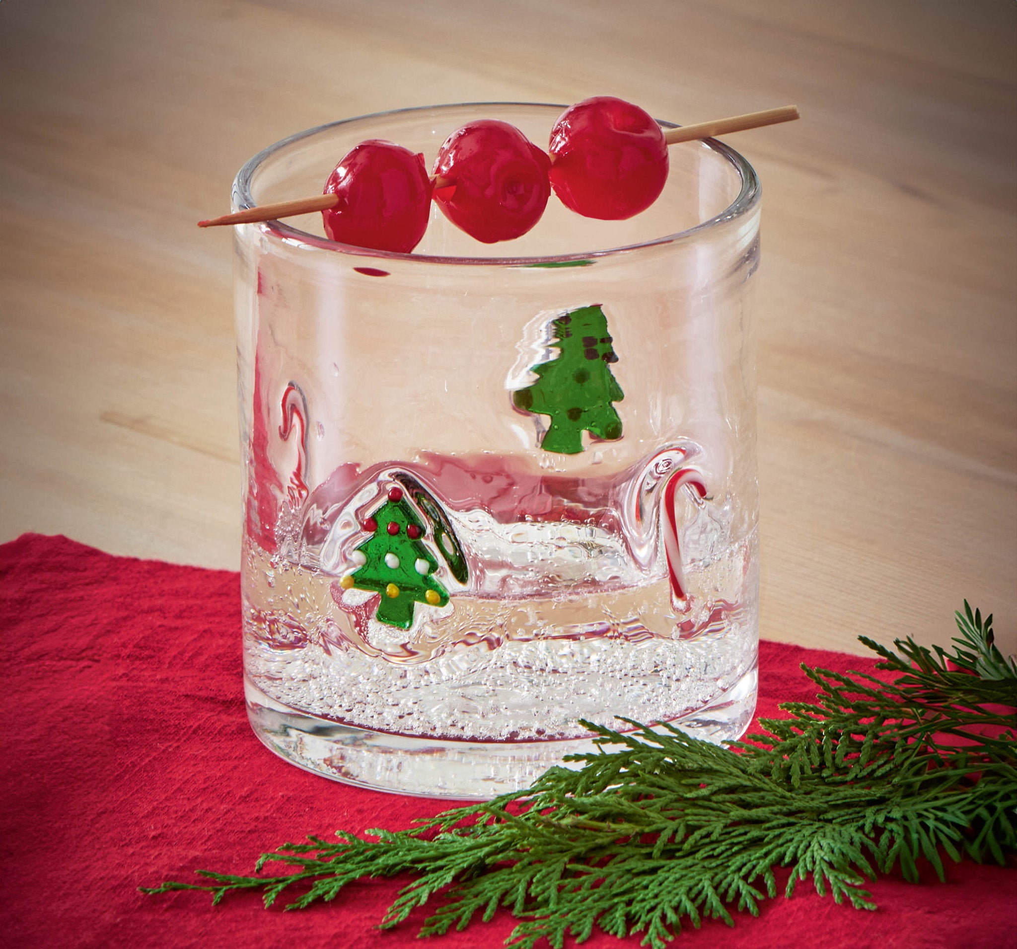 Christmas Tree & Candy Cane Double Old Fashioned Glass