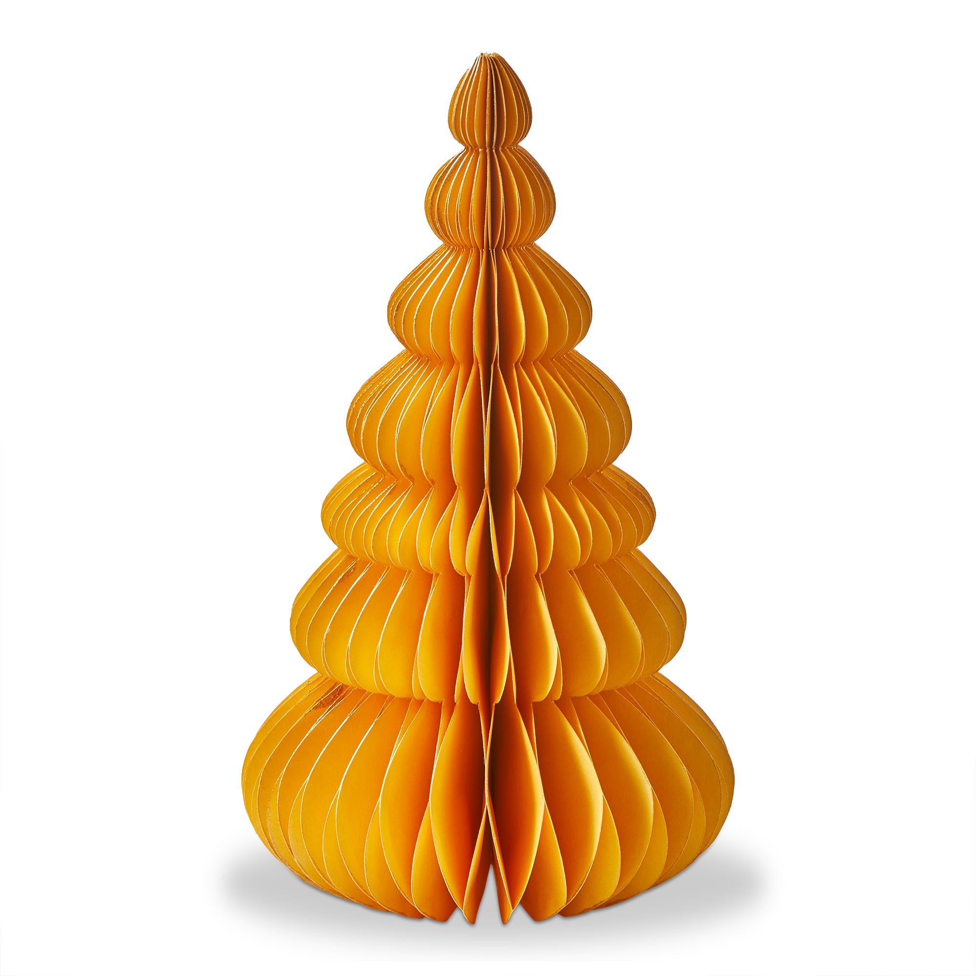 Small groovy paper tree in sunny yellow with pleated silhouette. Adds a pop of brightness to mantels, sideboards, or kids spaces. Hand painted details add warmth while its versatile design makes styling simple. Sized for layered displays and pairs beautifully with seasonal greenery and décor. View all items in Groovy Christmas.