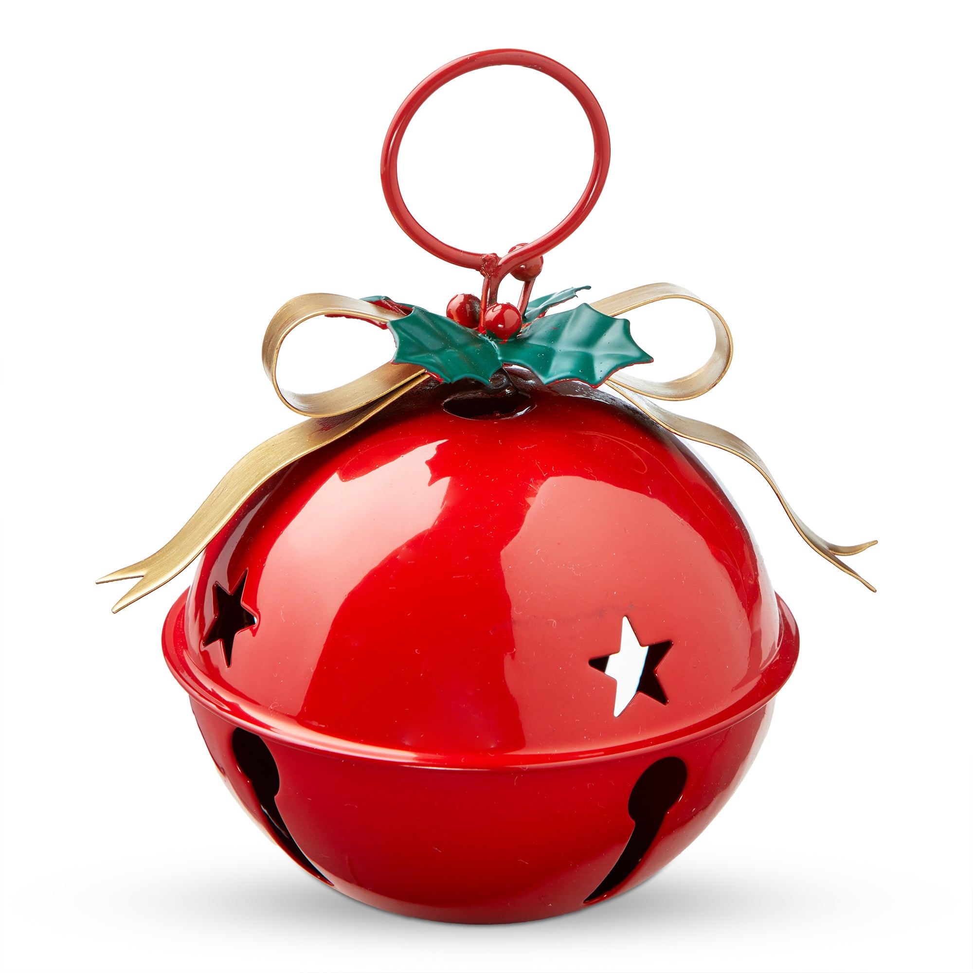 Smaller red jingle bell decor piece with star cutouts and top loop. Layer with greenery, garlands, or other bells to build a cheerful holiday display. Hand painted details add warmth while its versatile design makes styling simple. Sized for layered displays and pairs beautifully with seasonal greenery and décor. View all items in Wonderful Christmastime.