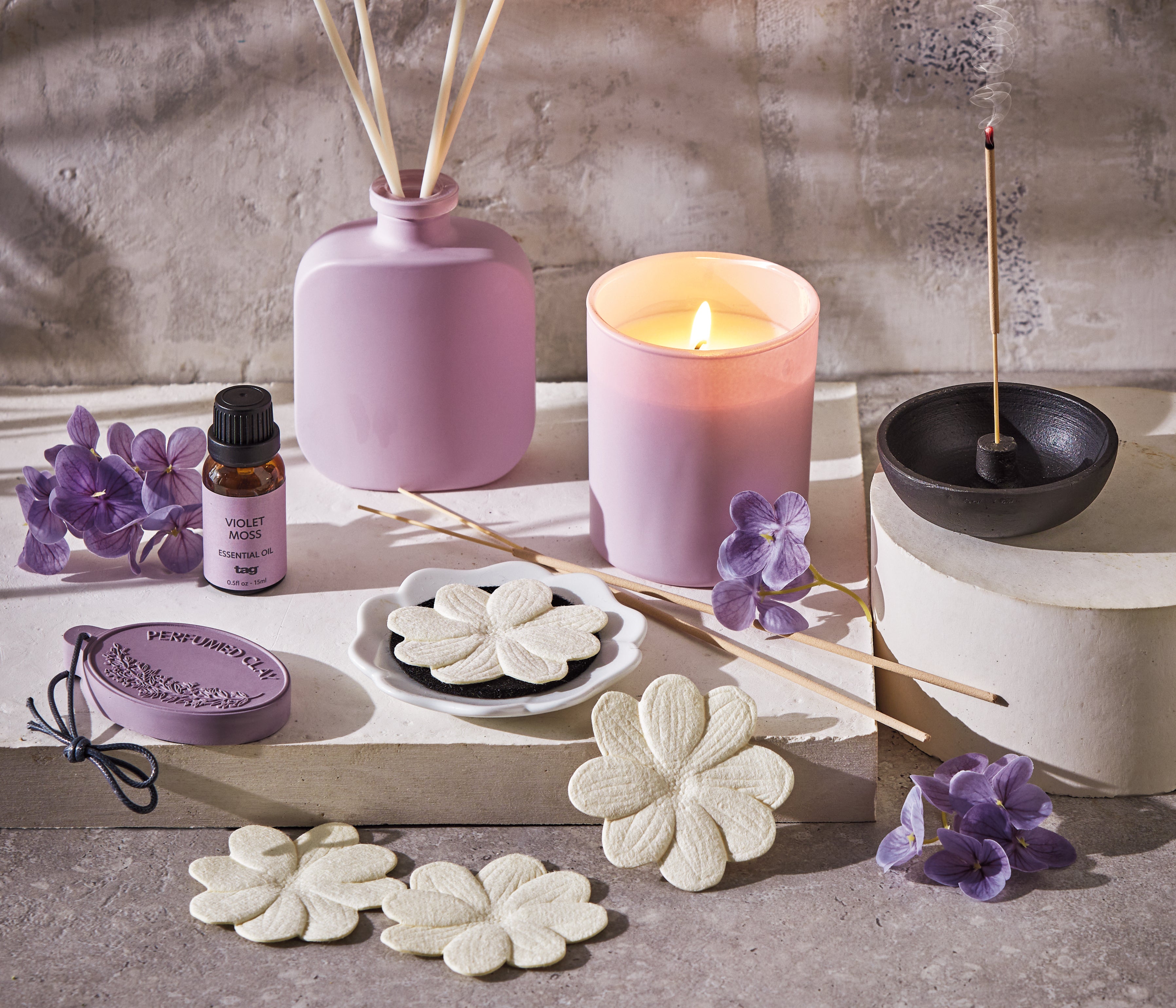 Indulge in the romantic fragrance of Violet Moss. This enchanting reed diffuser features a blend of floral and woody notes, including violet, lavender, and moss. The stylish purple packaging and bottle complement the dreamy scent, making it a perfect addition to any bedroom or living room. View all items in Home Fragrance.