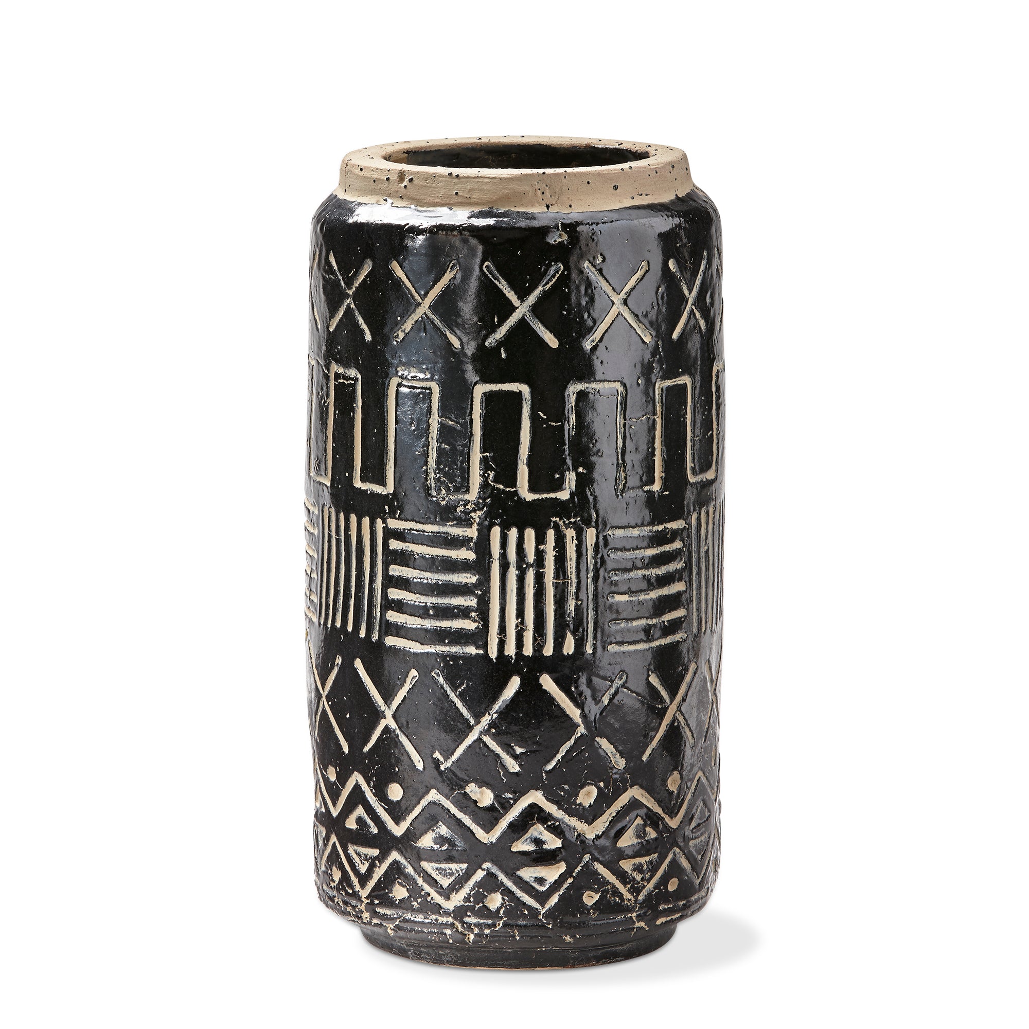 Elevate your home decor with our global vase. with a textured, terracotta construction and hand painted details, this vase is perfect for decorative branches or faux botanicals. the rustic base adds an earthy quality to your design, and is perfect on a tabletop or mantle.