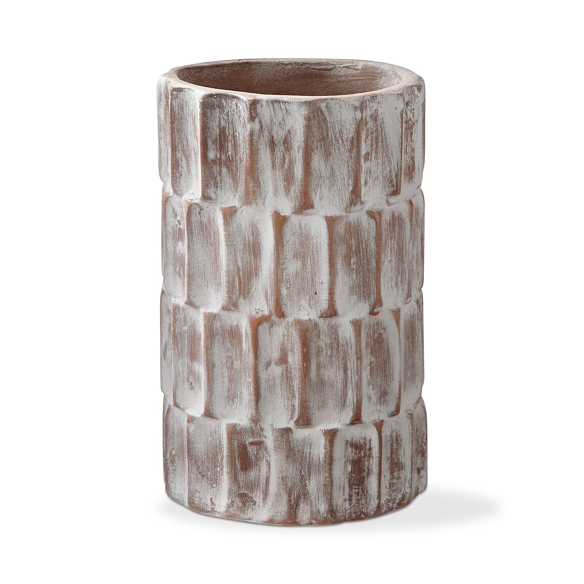 Elevate your home decor with this gorgeous artisan-made planter and vase. Features terracotta construction with white wash details, this piece is perfect for decorative botanicals and plants. The natural, rustic look adds an earthy quality to the design, perfect on a tabletop or mantel. Slight variations in color are to be expected—each piece is one-of-a-kind, no two pieces will be exactly alike. As water can permeate through terracotta, display with dry plants and botanicals or on its own.