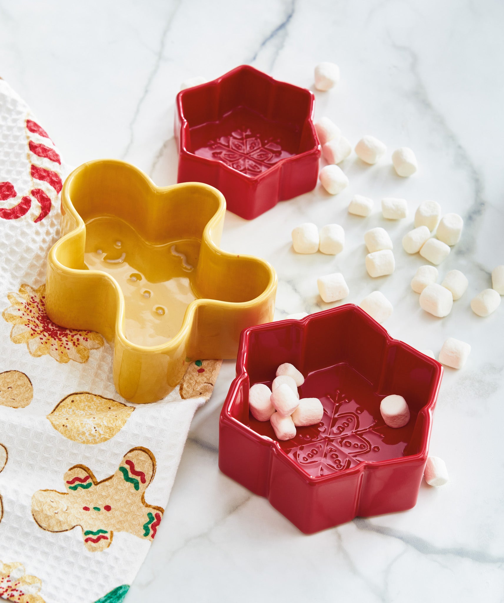 Gingerbread man ramekin shaped like a smiling cookie figure. Perfect for individual desserts, dips, or candy, and cute enough to go from oven to table. Hand painted details add warmth while its versatile design makes styling simple. Sized for layered displays and pairs beautifully with seasonal greenery and décor. View all items in Sweetest Christmas.