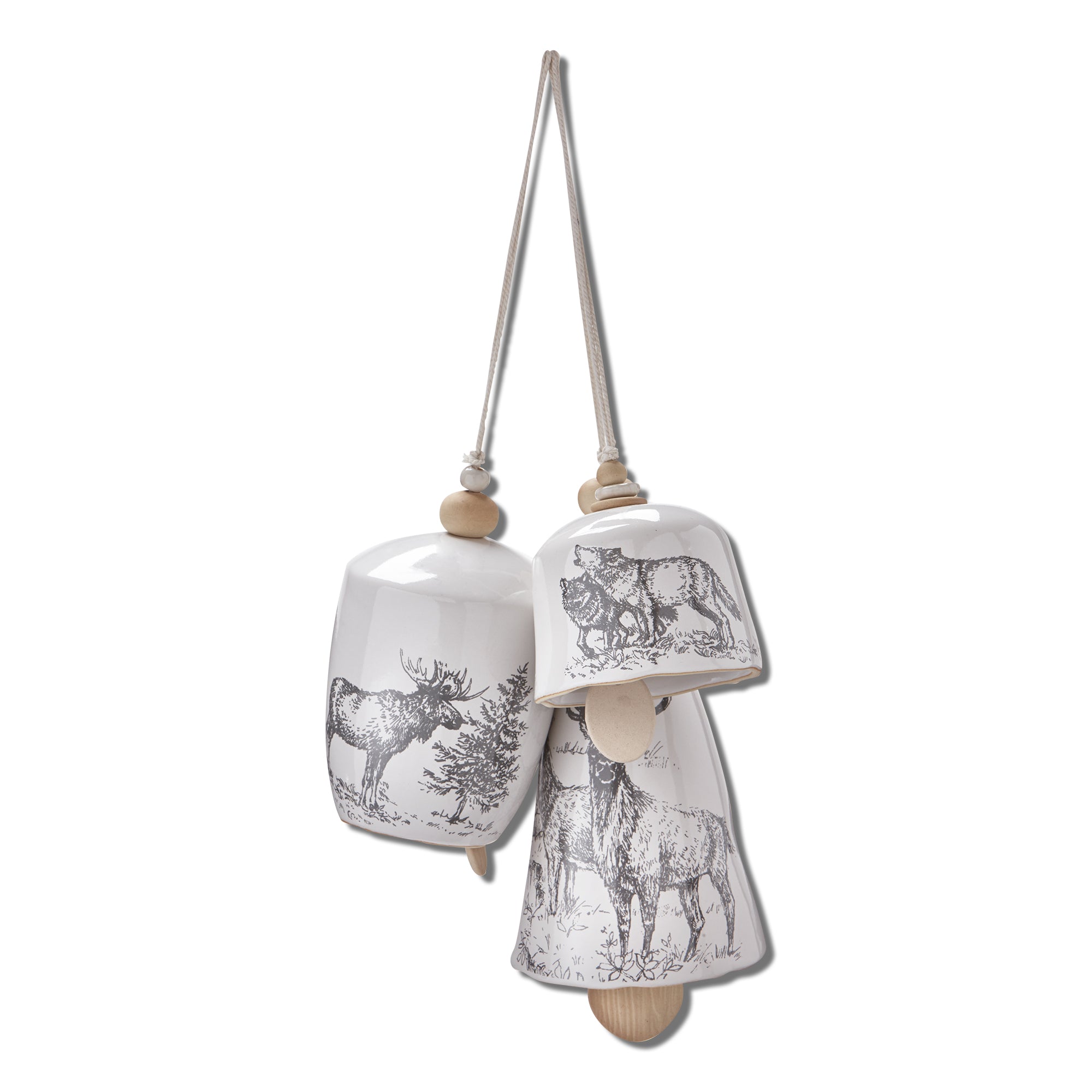 Add a distinctive, magical touch to your home this holiday season. these artisan-made stoneware bells feature beautifully hand-painted designs of woodland creatures. perfect addition to your christmas displays, incorporate into entryway decor, mantel decor, or door decor. assortment includes 3 bells.