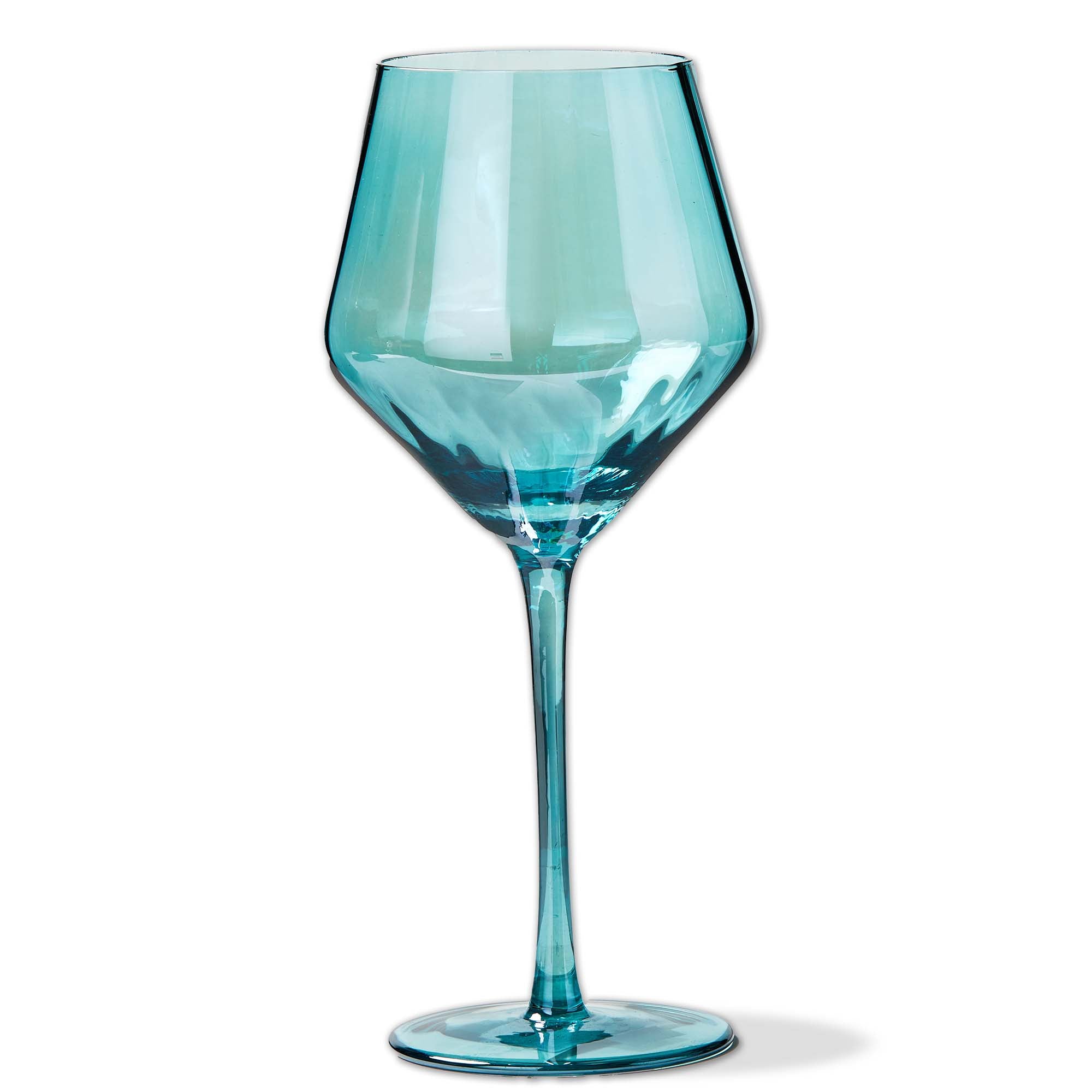 This versatile all-purpose wine glass is a perfect addition to any glassware collection. mouth-blown by skilled artisans, the glass features a stunning iridescent aqua finish that catches the light. the wide bowl design allows the wine to breathe, enhancing its aroma and flavor. enjoy your favorite red, white, or rosé wines in style. hand wash recommended to preserve the delicate finish.
