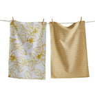 Two-piece set pairs leaf line art with a mustard micro-stripe. Hammam face with terry back delivers soft, quick-dry performance. View all items in Loom & Weave.