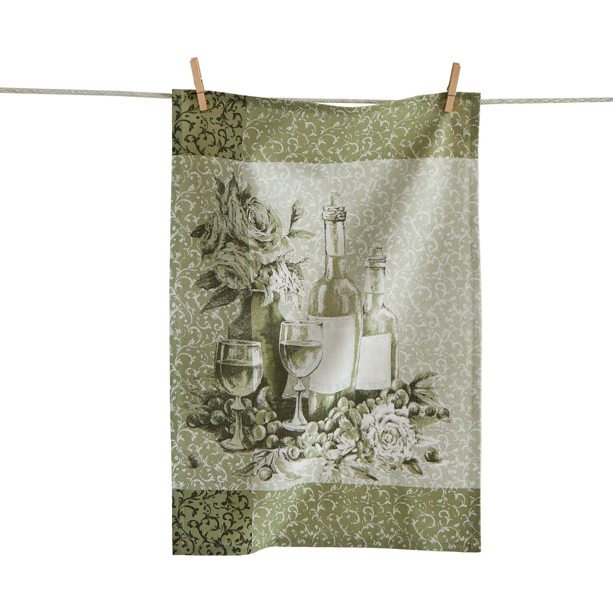 A vineyard still life in calming greens sets the entertaining mood. 100% cotton handles bar duty, picnics, and hostess gifts. View all items in Loom & Weave.