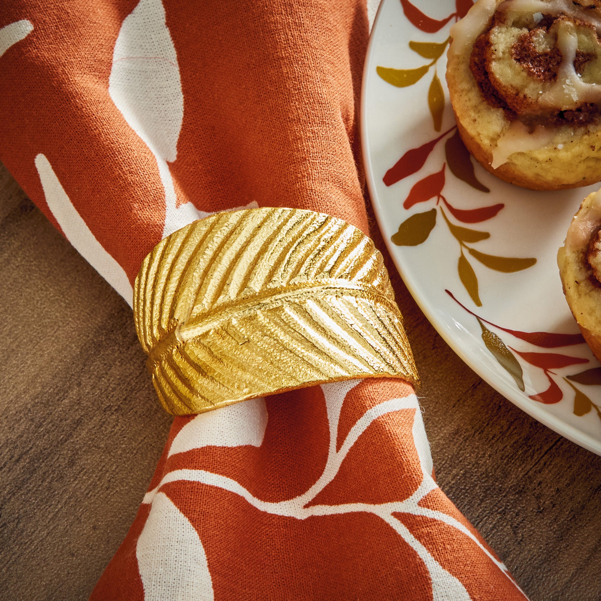 A beautiful addition to any napkin. Featuring a handmade carved leaf design in an antique brass finish. View all items in Grace & Gratitude.