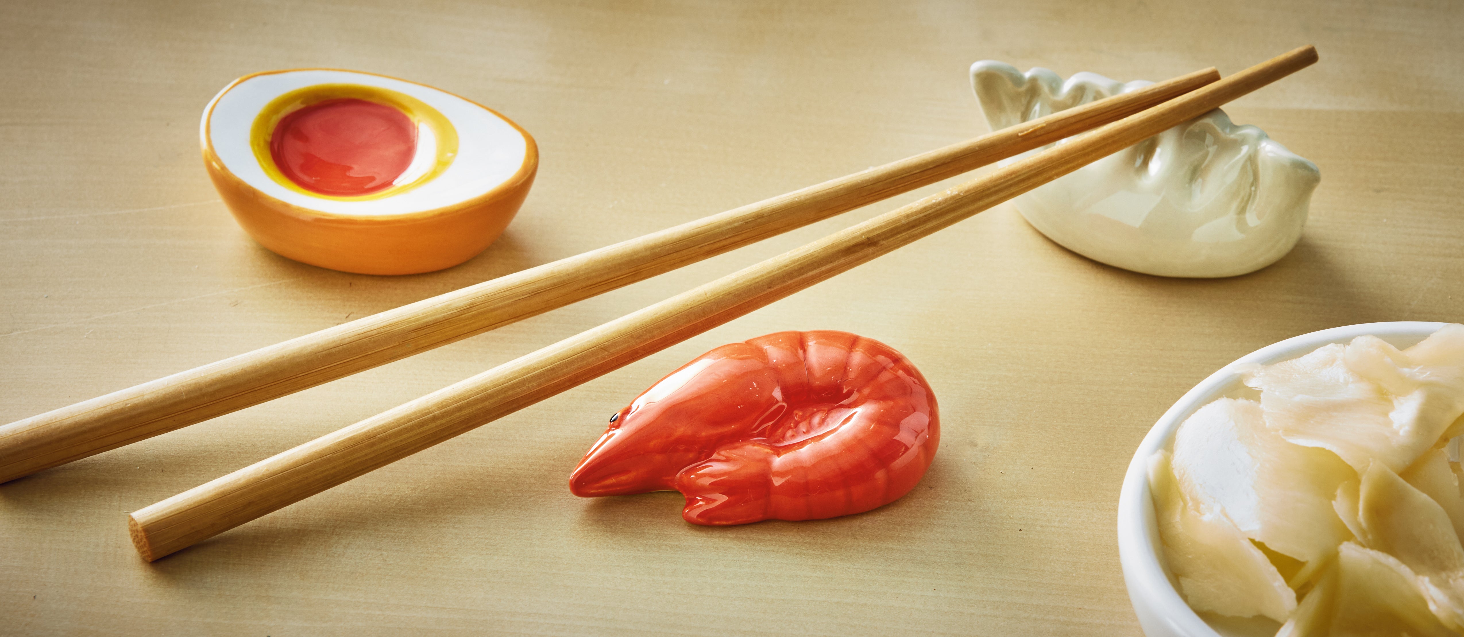 Keep chopsticks tidy and tables playful with this set of 3 food-shaped dolomite rests—fun for everyday meals and sushi nights. View all items in Noodle Bar.