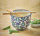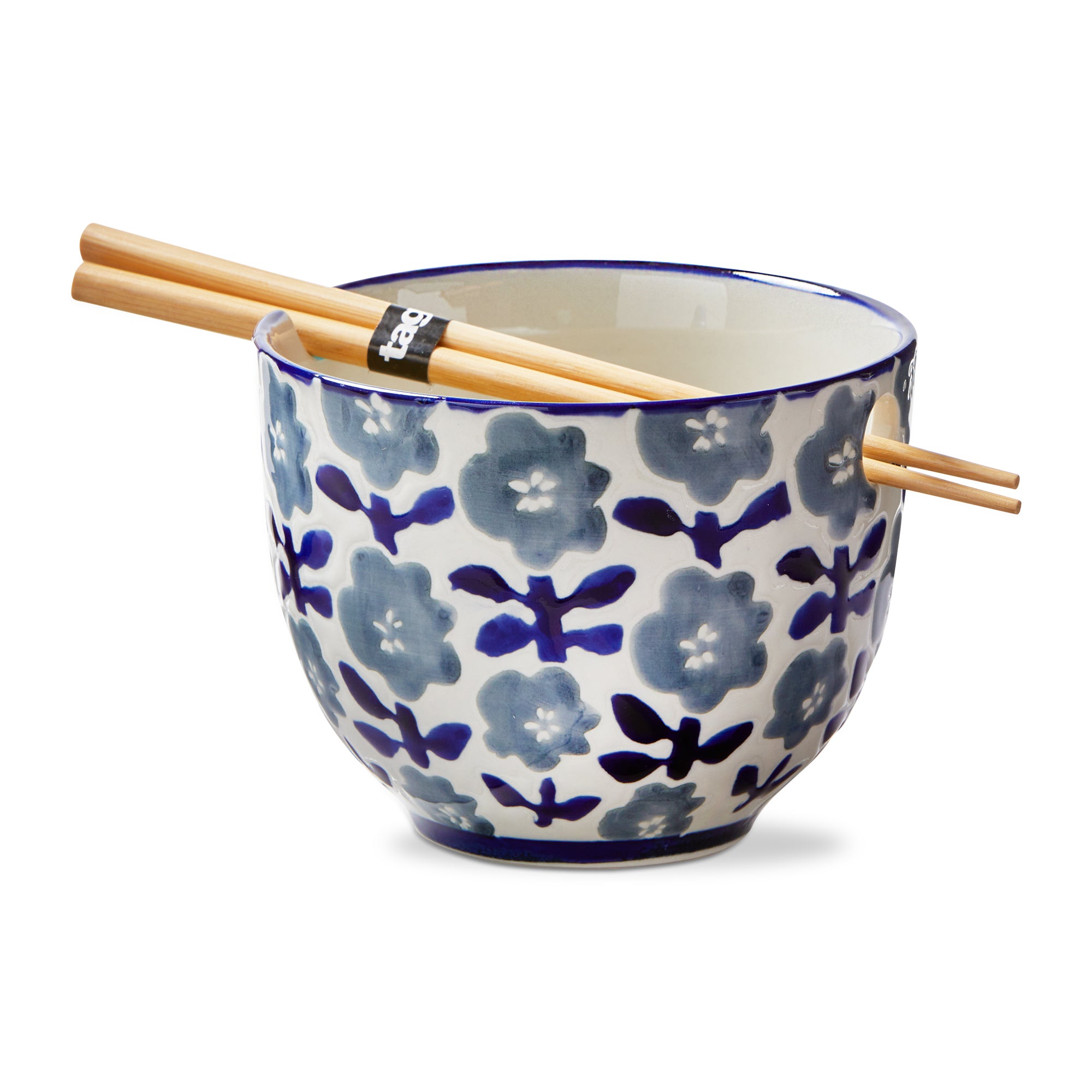Say “it’s ramen time” with this set of 2 blue floral stoneware bowls complete with bamboo chopsticks—pretty on the table and charming on display. View all items in Noodle Bar.