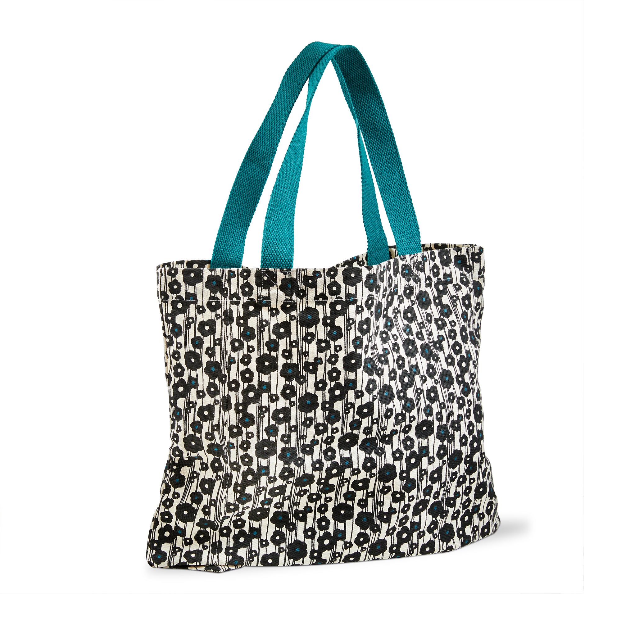 Mini-daisy print and teal straps create an easy everyday carry. Durable cotton handles commutes, crafts, and quick errands. View all items in Oh So She.