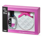 The Geo Room Fragrance & Medallion set offers a geometric plaster medallion paired with a coordinating fragrance spray. View all items in Oh So She.