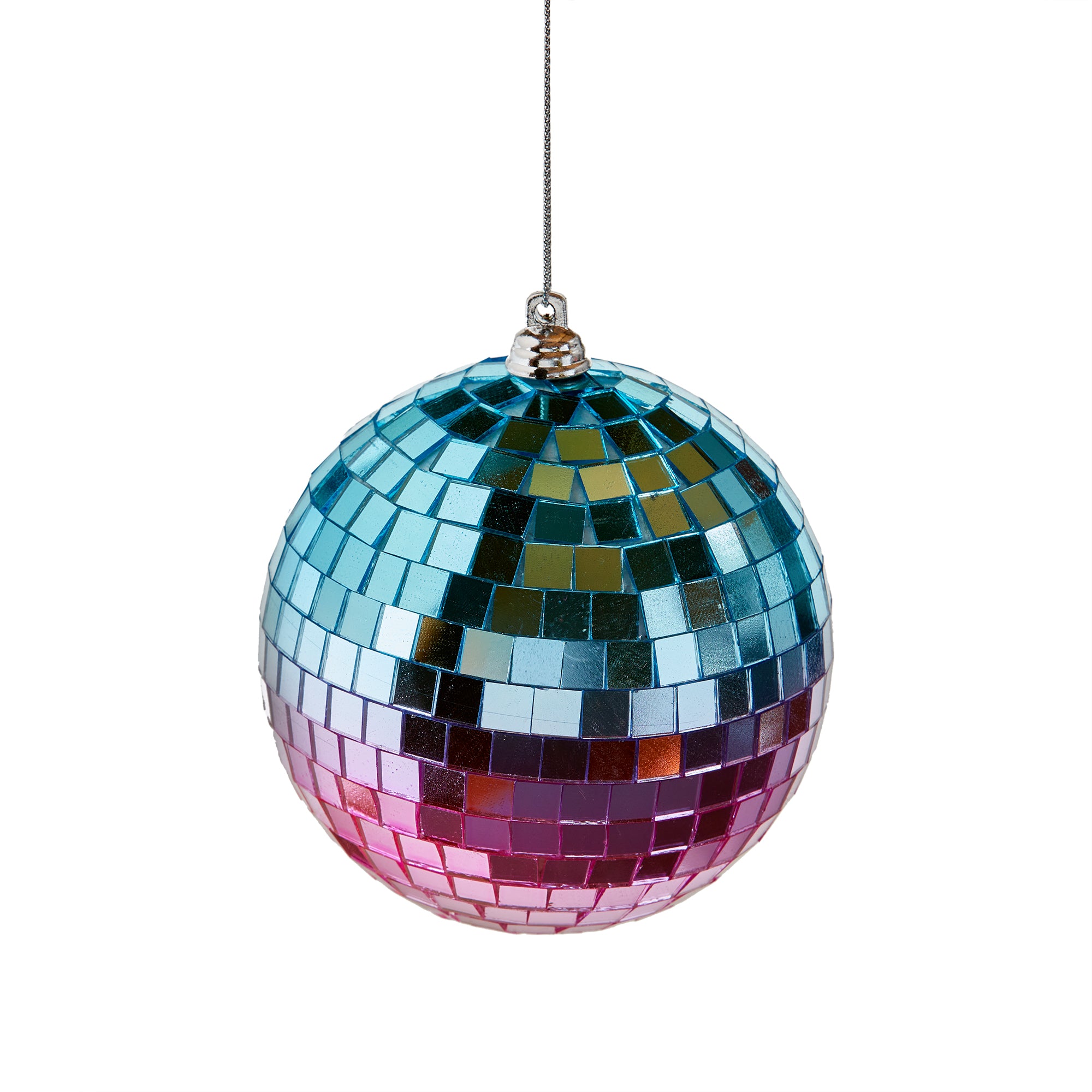 Groovy disco ball ornament shines with mirrored facets for a fun retro tree accent and can also hang in windows to catch the light. Hand painted details add warmth while its versatile design makes styling simple. Sized for layered displays and pairs beautifully with seasonal greenery and décor.