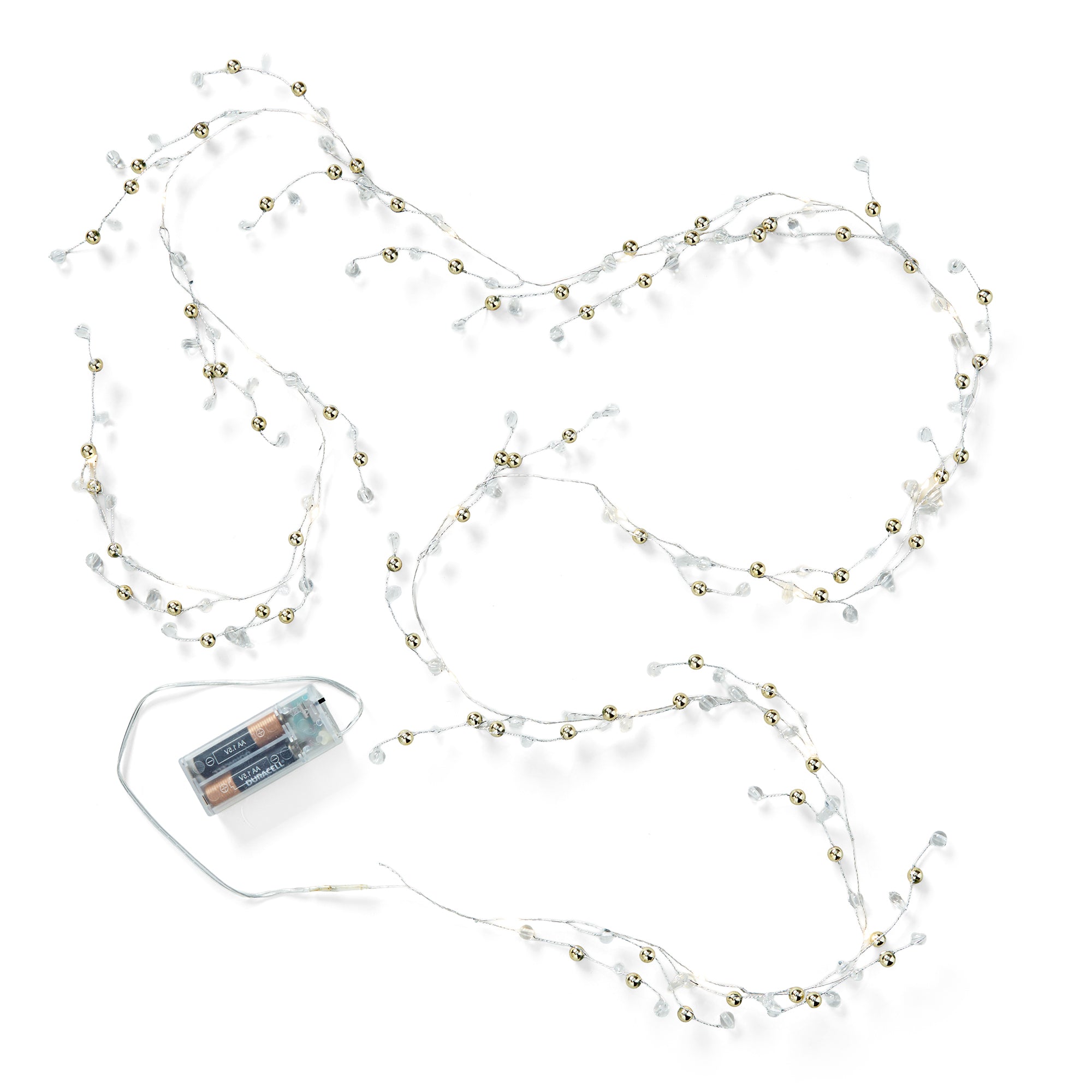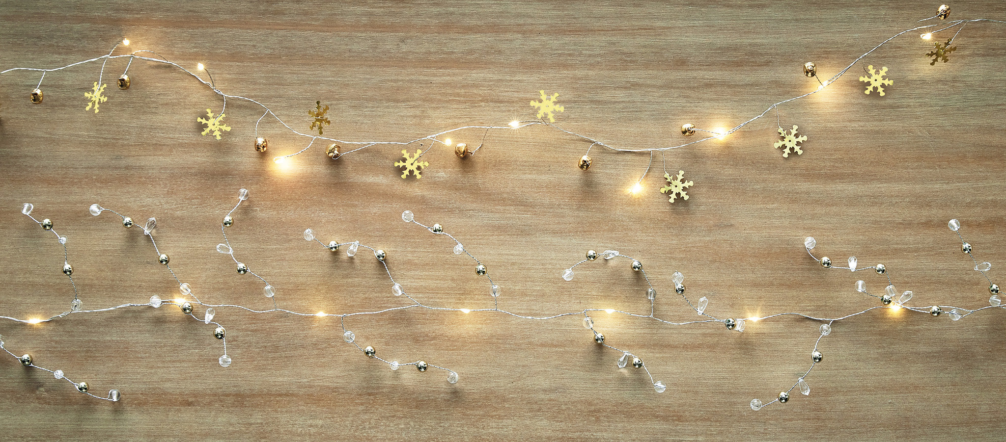 Warm white LED string light set featuring 20 soft glowing bulbs. Includes an on off 6 hour timer for easy daily use. Perfect for mantels, garlands, tabletop displays, and holiday decorating. Indoor use only. Hand painted details add warmth while its versatile design makes styling simple. Sized for layered displays and pairs beautifully with seasonal greenery and décor.