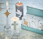Peace on Earth candle pin assortment that adds a festive accent to taper or pillar candles with 3 charming metal icons. Hand painted details add warmth while its versatile design makes styling simple. Sized for layered displays and pairs beautifully with seasonal greenery and décor.