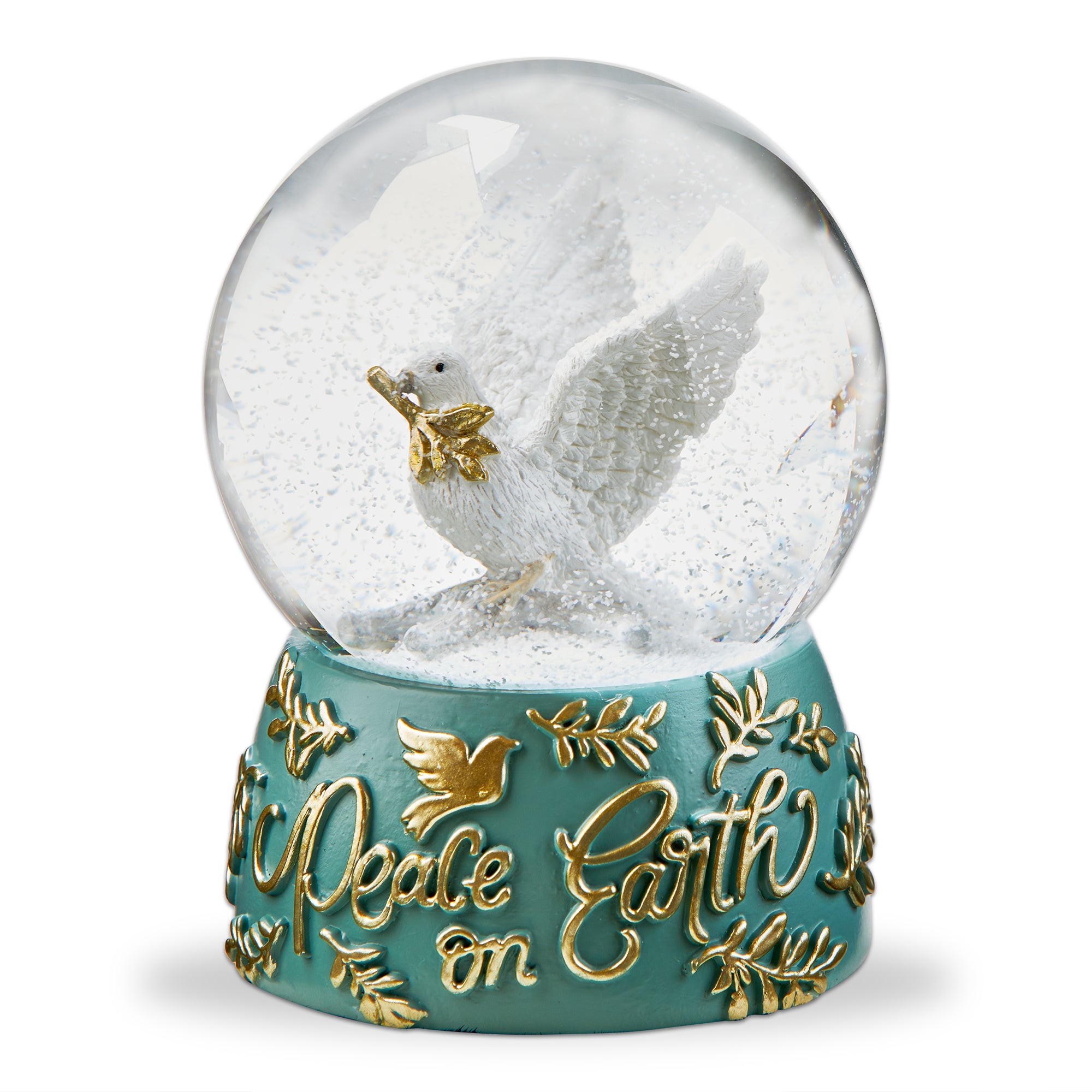 Peace on Earth snow globe features cardinals in a snowy scene inside a classic round globe that looks lovely on mantels and side tables. Hand painted details add warmth while its versatile design makes styling simple. Sized for layered displays and pairs beautifully with seasonal greenery and décor.