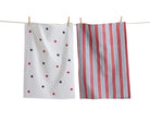 Beautiful set of two 100% cotton dishtowels: one hand screen-printed satin weave and one yarn-dyed woven stripe with dobby stitching. Includes hang loops. Great for picnics, 4th of July celebrations, and backyard BBQs with dad!View all items in Red White & Summer.