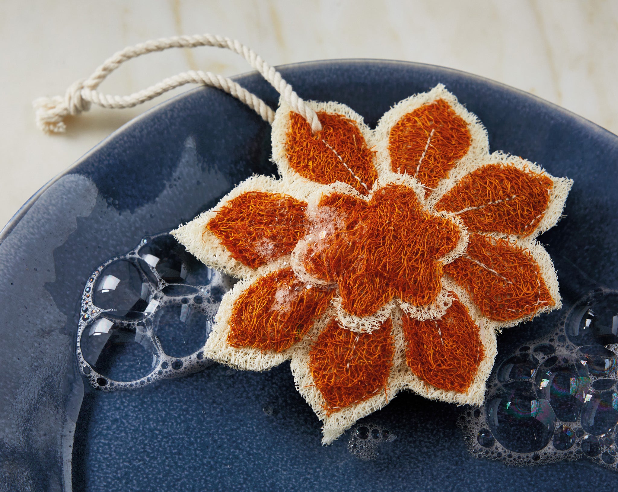 Sunflower loofah scrubber brightens bath time with a sunny floral silhouette that feels cheerful all year. Hand painted details add warmth while its versatile design makes styling simple. Sized for layered displays and pairs beautifully with seasonal greenery and décor.
