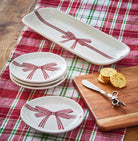 Small red bow platter that adds holiday elegance to serving and seasonal presentations. Hand painted details add warmth while its versatile design makes styling simple. Sized for layered displays and pairs beautifully with seasonal greenery and décor.