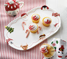 Holiday Cheer oval platter featuring sculpted earthenware and hand painted details perfect for serving cookies and festive treats. Hand painted details add warmth while its versatile design makes styling simple. Sized for layered displays and pairs beautifully with seasonal greenery and décor.