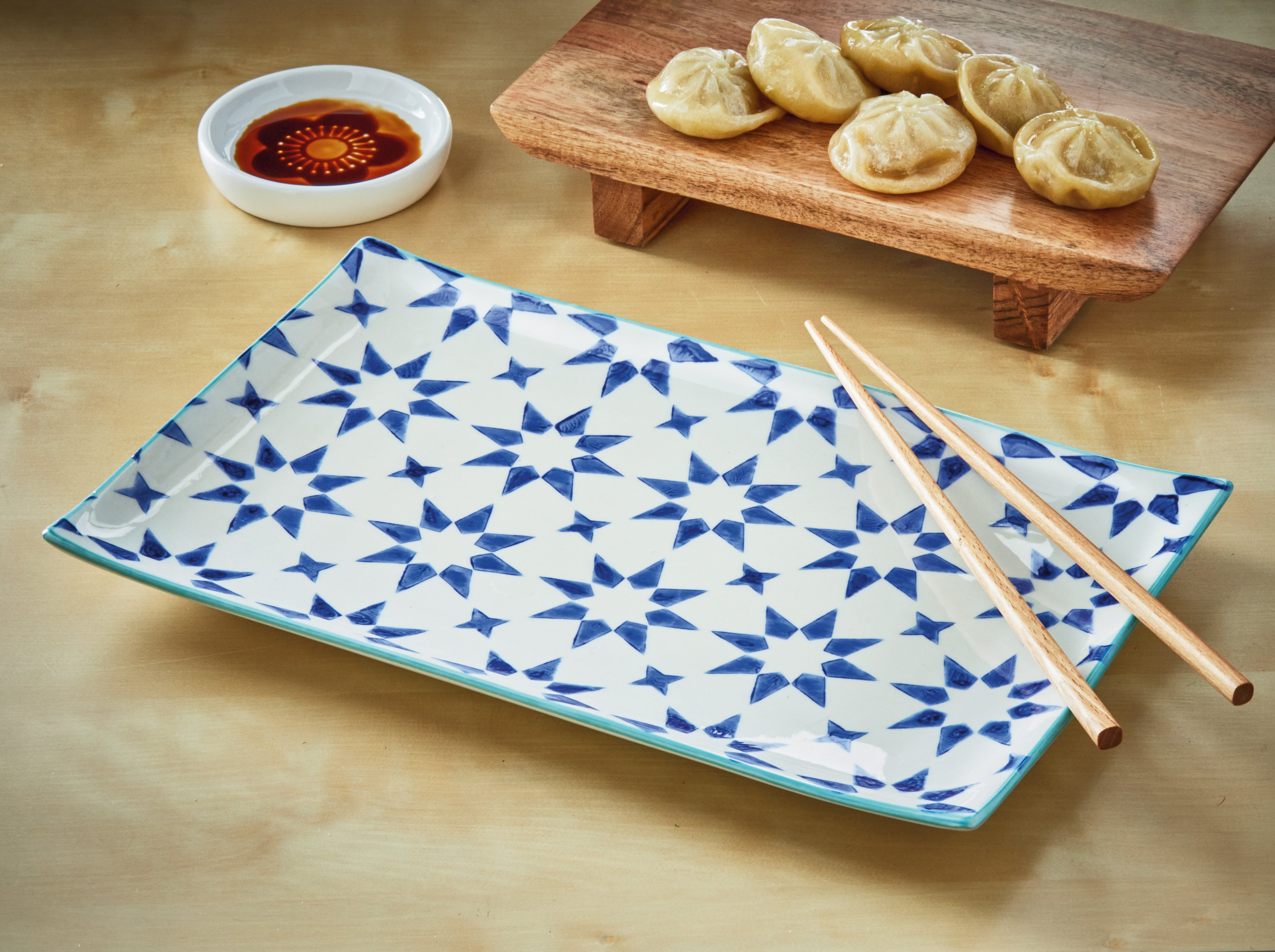 Put stars on the table. This stoneware platter features a crisp blue star pattern—just right for sushi, small bites, or celebratory desserts. View all items in Noodle Bar.