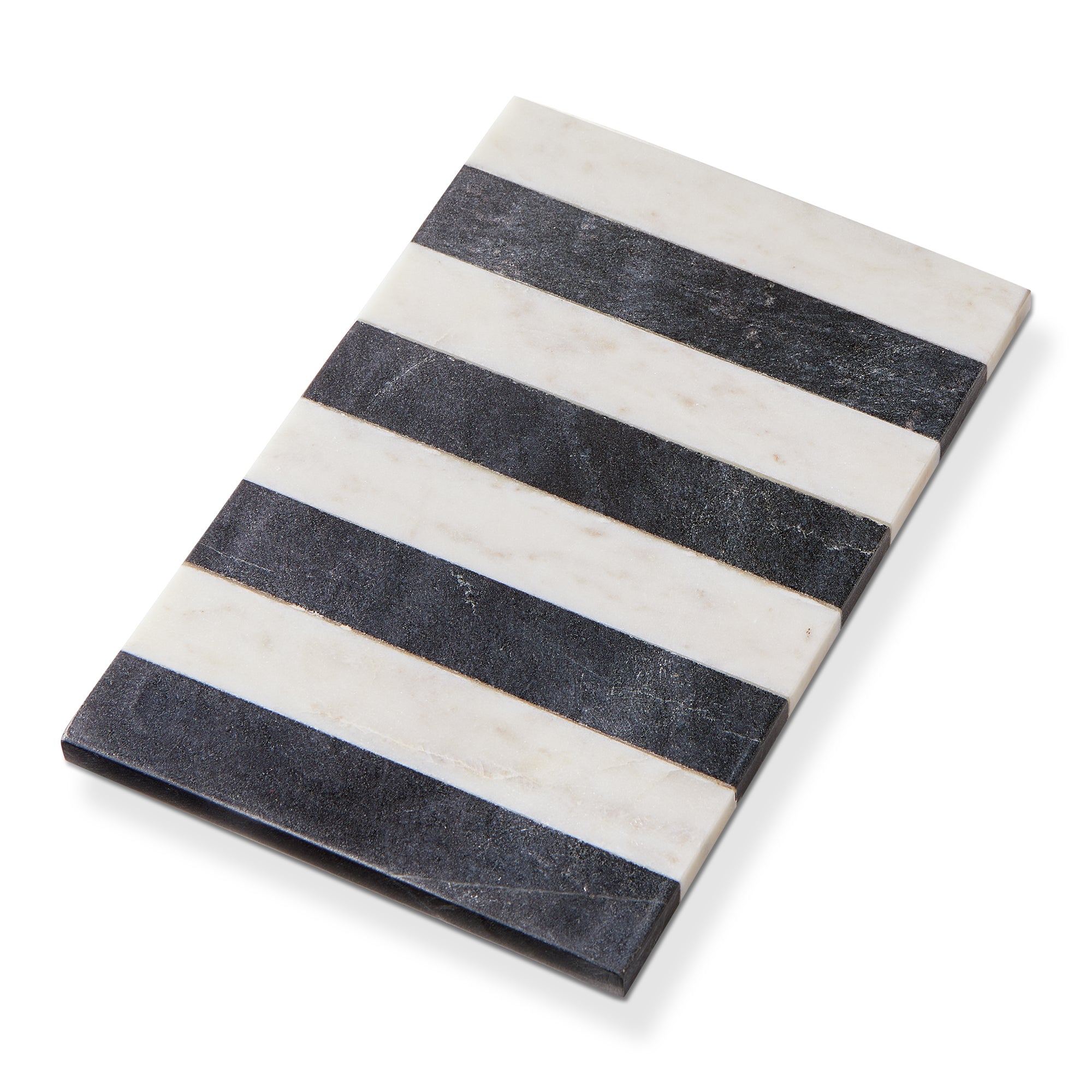A unique charcuterie board that also serves as a stunning display piece! This black multi-colored striped marble board is hand-polished and finished.
