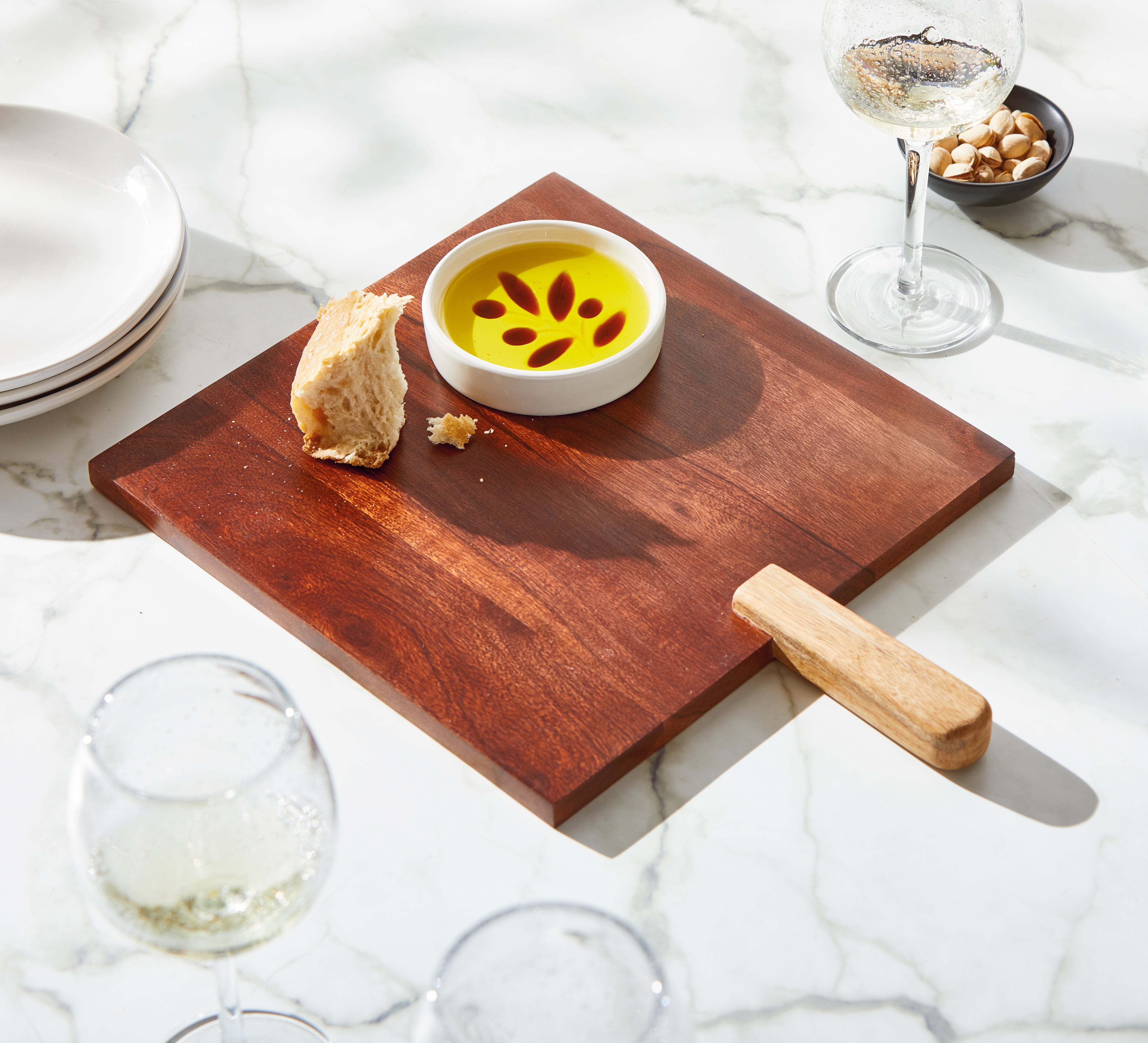 A modern square shape meets traditional craftsmanship in this serving board made from mango and acacia wood—perfect for contemporary kitchens. View all items in Serve & Savor.