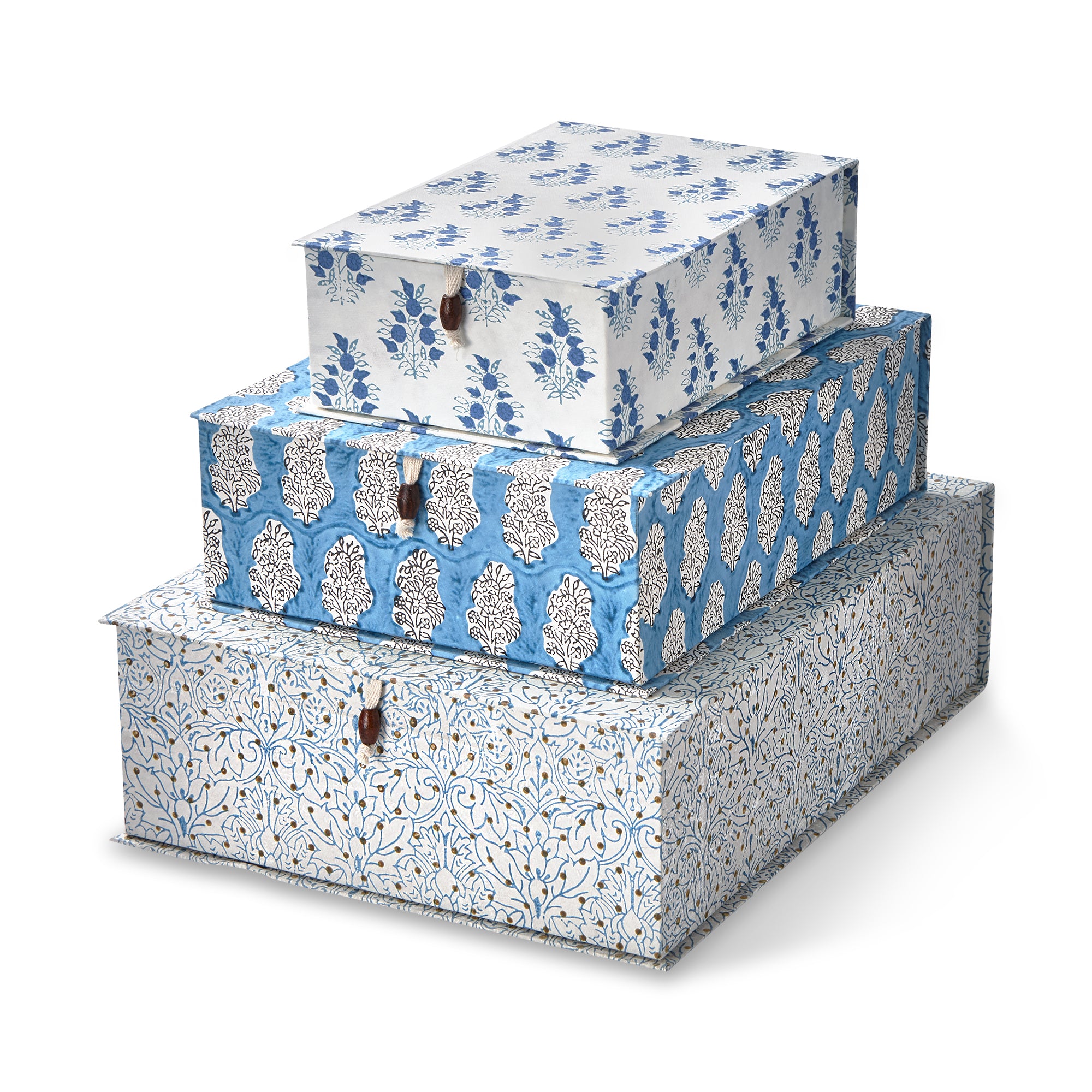 Josie Artisan Block Printed Handmade Paper Keepsake Boxes Set Of 3