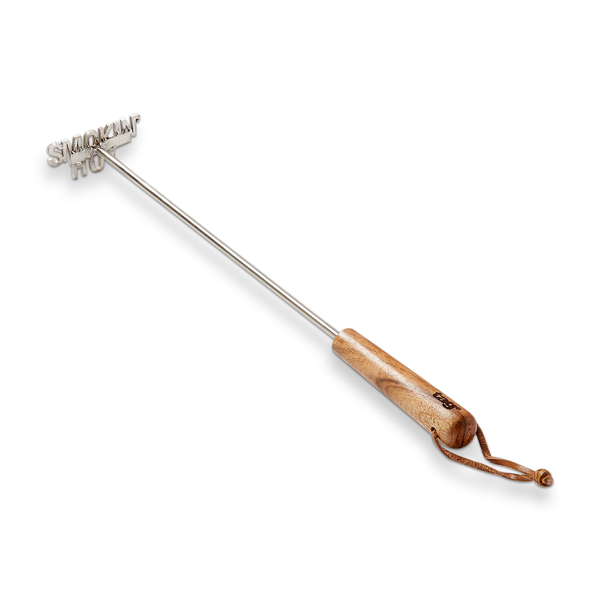 Brand your steaks with a "Smokin Hot" message using this stainless steel brand with an acacia wood handle. Heat over an open flame, coals, or gas range and gently press onto your steak before serving. Protective pad recommended during use.