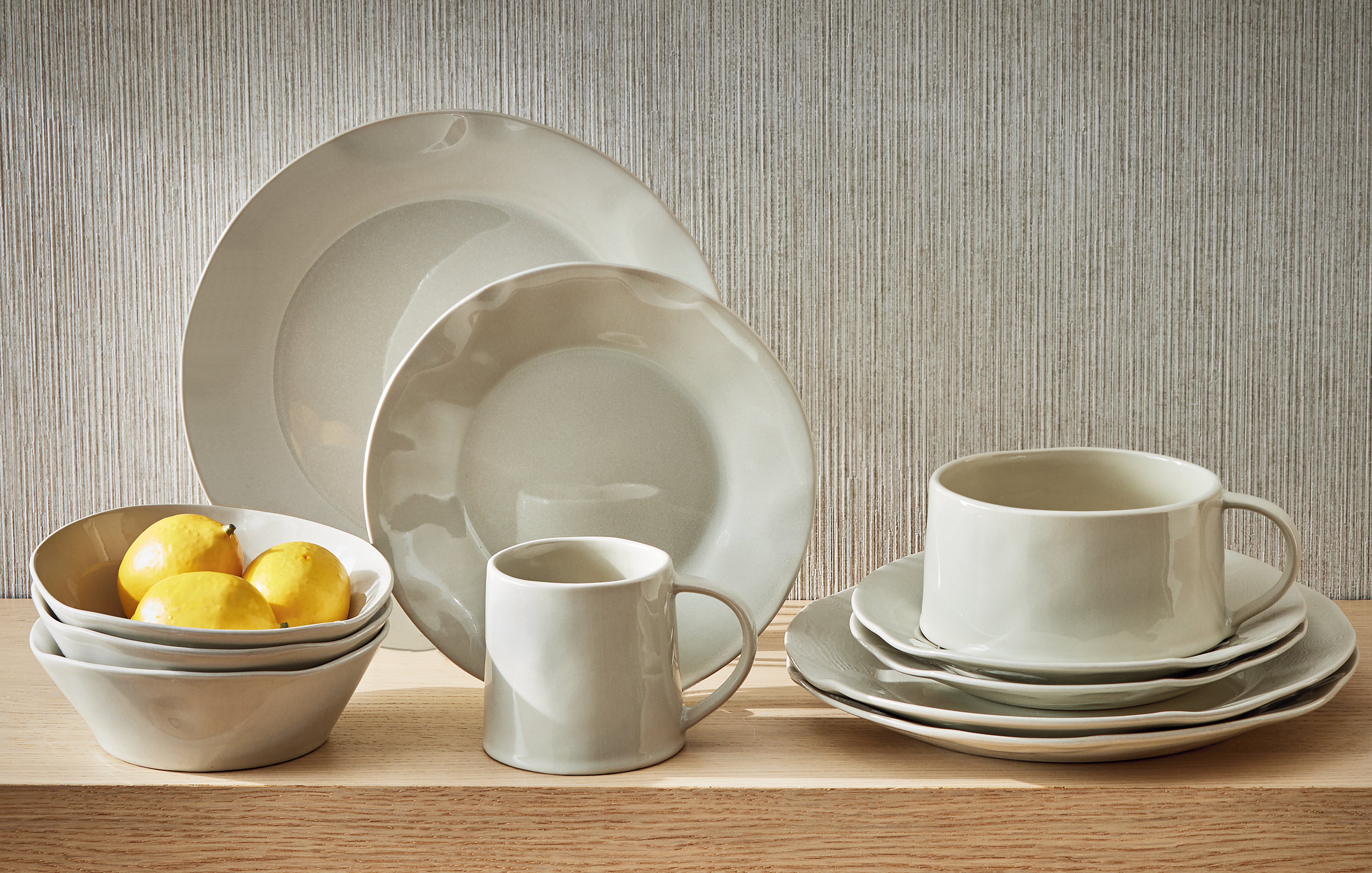 Set the table with the Hudson Dinner Plate in ivory—an organically shaped stoneware piece washed in a reactive glaze that gives each plate one-of-a-kind character. Sized for everyday meals or dressed-up dinners. View all items in Tag Table.