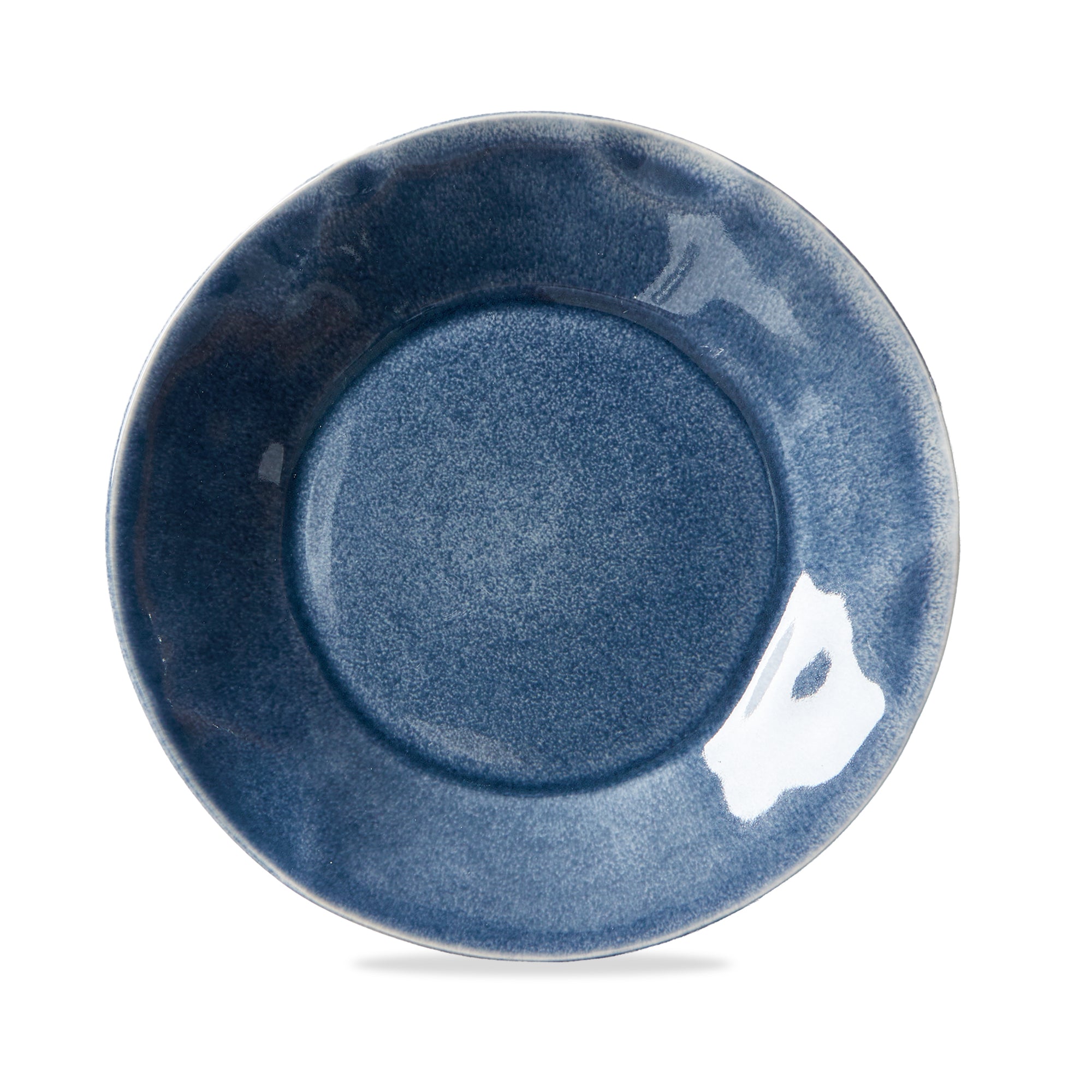 Brighten the stack with the Hudson Salad Plate in dark blue. An organic profile and layered reactive glaze make salads and desserts pop. View all items in Tag Table.